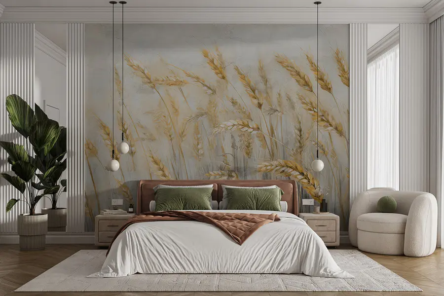 Verwandeln Sie Ihren Raum mit einer atemberaubenden Fototapete, die ein Weizenfeld zeigt, das sich sanft im Wind wiegt. Dieses Kunstwerk verleiht jedem Raum einen Hauch von natürlicher Schönheit und eine warme, erdige Atmosphäre. Stellen Sie sich vor, Sie schlürfen Ihren Morgenkaffee und haben das Gefühl, in einem endlosen goldenen Feld zu stehen, während die Sonne Ihre Wangen küsst. Es ist die Art von Wandbild, die Wände zum Leben erweckt und Tagträume von Picknicks und faulen Nachmittagen hervorruft. Diese Fototapete eignet sich perfekt für ein gemütliches Wohnzimmer oder ein ruhiges Schlafzimmer. Sie vermittelt ein Gefühl von Ruhe und Freude und erinnert jeden daran, dass die Natur nur einen Blick entfernt ist.