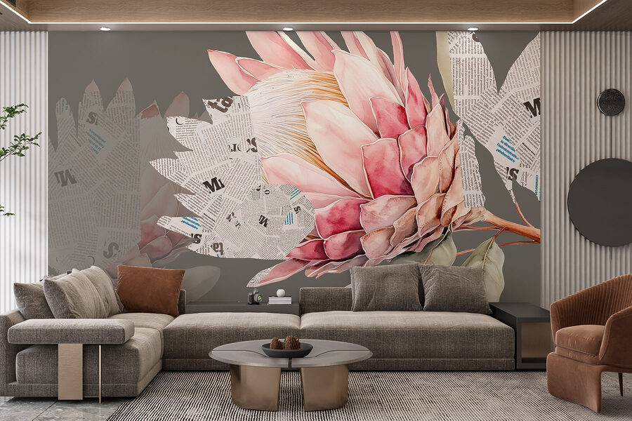 Verwandeln Sie jeden Raum mit dieser bezaubernden Fototapete, die eine wunderschöne Blume, umgeben von skurrilen Blättern und Zeitungsschnipseln, zeigt. Es ist, als hätten sich die Natur und die Kreativität unterhalten und beschlossen, die Dinge ein wenig aufzumischen. Stellen Sie sich vor, Sie betreten Ihren Raum und werden von leuchtenden Blütenblättern begrüßt, die von der Wand abzuspringen scheinen und Sie dazu einladen, innezuhalten und die Schönheit auf sich wirken zu lassen. Dieses Wandbild bringt eine frische Brise Charme und Charakter mit sich und ist damit die perfekte Kulisse für gemütliche Morgenstunden mit Kaffee oder anregende Abende voller Lachen. Jeder, der sich in der Nähe dieses Bildes aufhält, wird sich ermutigt fühlen, als ob jeder Blick ein wenig Sonnenschein ins Haus bringt. Es ist nicht nur Dekoration, es ist eine Stimmung!