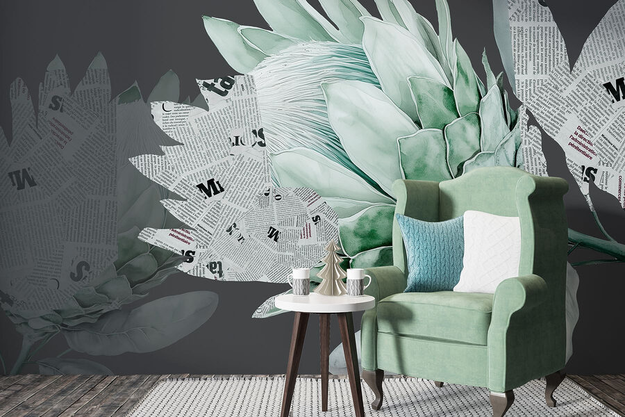 Verwandeln Sie jede langweilige Wand in einen lebendigen Gesprächsanlass mit dieser einzigartigen Fototapete, die eine Artischocke zeigt, die mit verspielten Zeitungsschnipseln verflochten ist. Es ist, als hätte die Artischocke ein neues Hobby: das Lesen! Dieses Design verleiht Wohnzimmern, Küchen oder sogar einer kleinen Ecke, die Sie bisher vernachlässigt haben, einen skurrilen Touch. Stellen Sie sich vor, wie Ihre Freunde angestrengt nach dem Inhalt der Artikel suchen, während Ihre Wand die Hauptrolle spielt. Jedes Blatt mit seinen sanften Grüntönen lädt zur Ruhe ein. Es ist eine Mischung aus Natur und Kreativität – ein wahrer Augenschmaus! Perfekt für alle, die sowohl Stil als auch ein gutes Lachen schätzen.