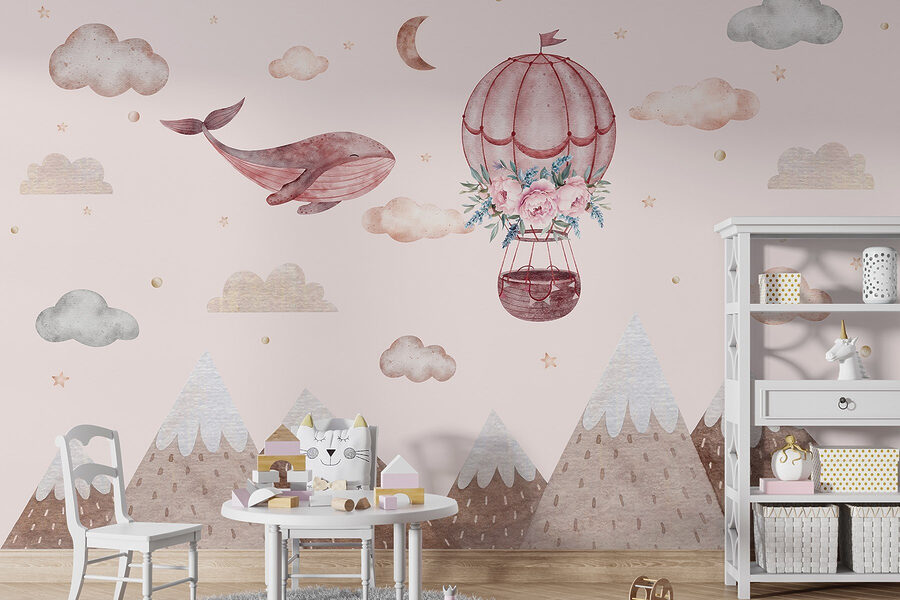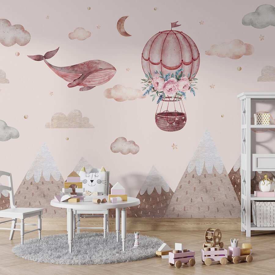 Stellen Sie sich eine skurrile Welt vor, in der Wale durch den Himmel gleiten – ja, genau das passiert hier mit diesem Wandbild! Mit einem charmanten Heißluftballon, der mit zarten Blumen geschmückt ist, ist es eine entzückende Szene, die die Fantasie anregt. Stellen Sie sich vor, es verwandelt ein Kinderzimmer oder eine gemütliche Leseecke in eine verträumte Welt. Die zarten Farben und die sanften Berge schaffen eine heitere Atmosphäre, die zum Entspannen mit einem guten Buch oder zum Träumen einlädt. Es ist wie ein kleines Abenteuer direkt an der Wand – wer würde nicht gerne mit einem freundlichen Wal in die Wolken segeln? Hängen Sie es einfach auf und lassen Sie die Magie sich entfalten!