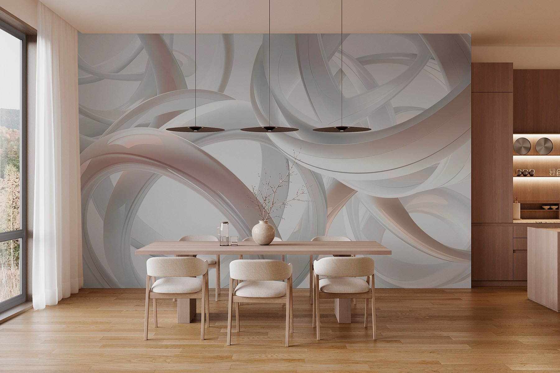 Verwandeln Sie Ihren Raum mit der Wandmalerei “Group of White Rings”, einer faszinierenden Darstellung, die mit Licht und Form tanzt. Stellen Sie sich vor, Sie betreten einen Raum, in dem sich runde Formen drehen und wenden und ein Gefühl endloser Bewegung erzeugen – perfekt, um Gespräche und Fantasie anzuregen. Stellen Sie es sich als Kulisse für gemütliche Zusammenkünfte oder ruhige Abende mit einem Buch vor. Die sanften Töne strahlen Wärme aus, ohne die Sinne zu überwältigen. Es ist, als hätte man ein modernes Kunstwerk direkt an der Wand, das bei jedem Blick etwas Neues offenbart. Man kann nicht anders, als zu lächeln, wenn das Licht genau richtig einfällt – wer hätte gedacht, dass Dekoration so viel Freude bereiten kann? Lassen Sie sich von der Laune anstecken und lassen Sie diese Ringe in jedem Raum zum Mittelpunkt werden.
