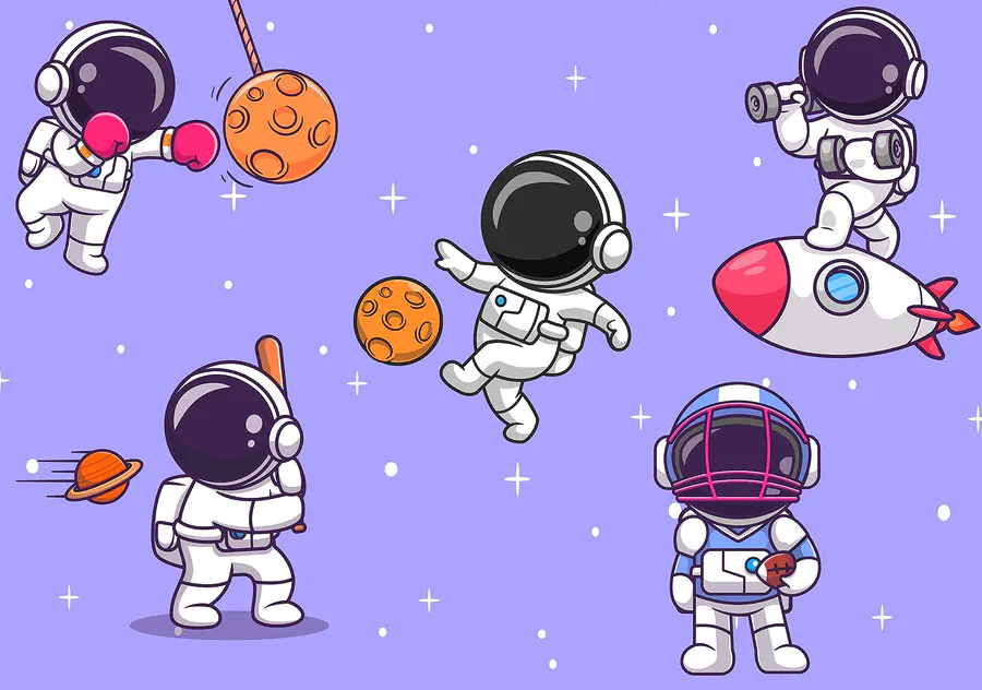 Stellen Sie sich vor, Sie betreten einen Raum, in dem Astronauten eine kosmische Party feiern – klingt lustig, oder? Diese Fototapete fängt diesen spielerischen Geist mit Cartoon-Astronauten ein, die im Weltraum herumhüpfen und alles Mögliche machen, vom Boxen mit Mondgestein bis zum Zoomen auf Raketen. Es ist wie eine lebendige Geschichte, die sich an Ihrer Wand entfaltet, perfekt für Kinder und Junggebliebene. Stellen Sie sich vor, wie sich die ernsten Momente des Alltags aufhellen, wenn Sie einen Blick auf diese schrulligen Weltraumforscher erhaschen, die Sie daran erinnern, Freude und Abenteuer zu erleben. Wer würde sich nicht ein Stückchen Universum wünschen, das mit Glück besprenkelt ist? Verwandeln Sie einen schlichten Raum in einen phantasievollen Zufluchtsort, wo Träume fliegen!