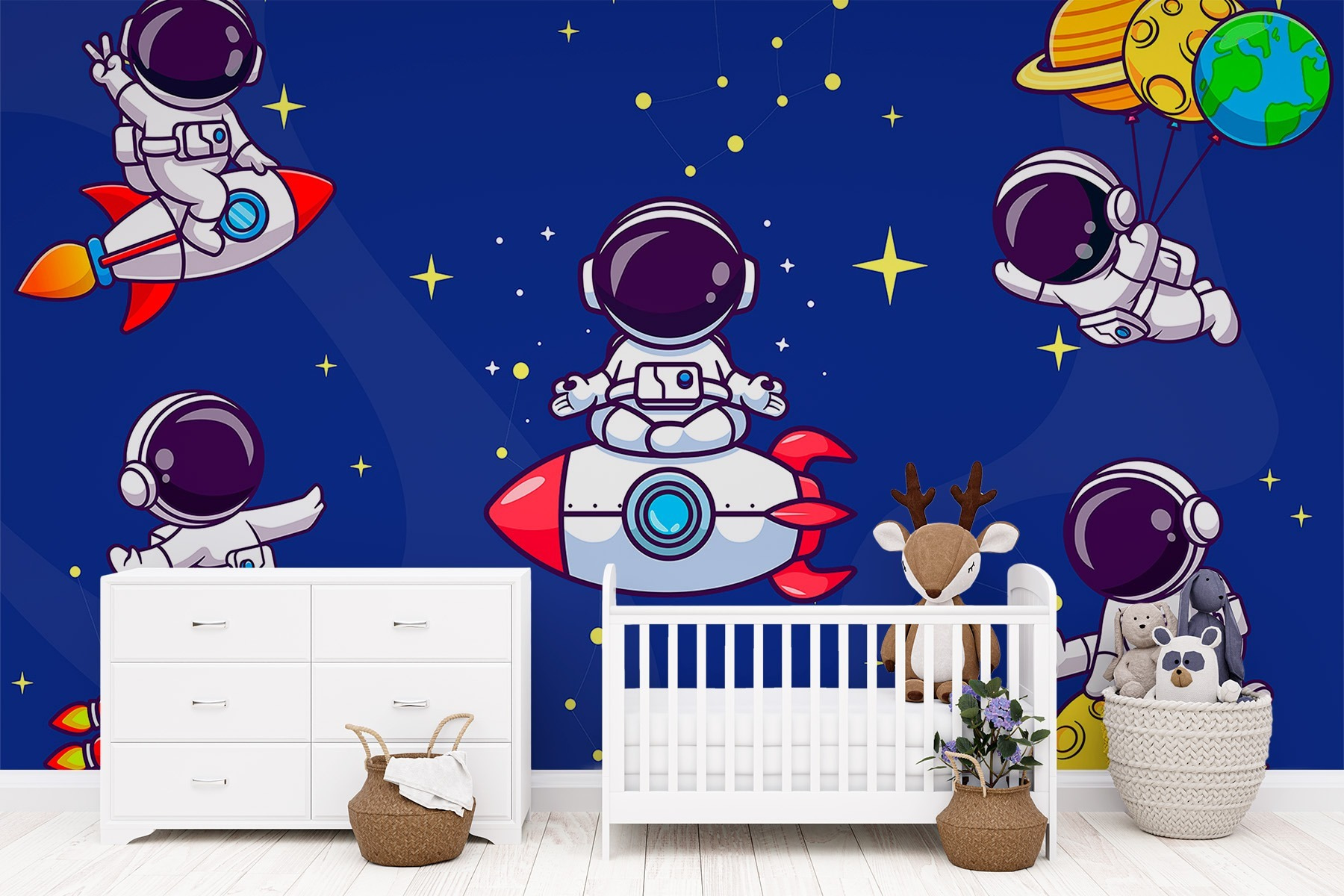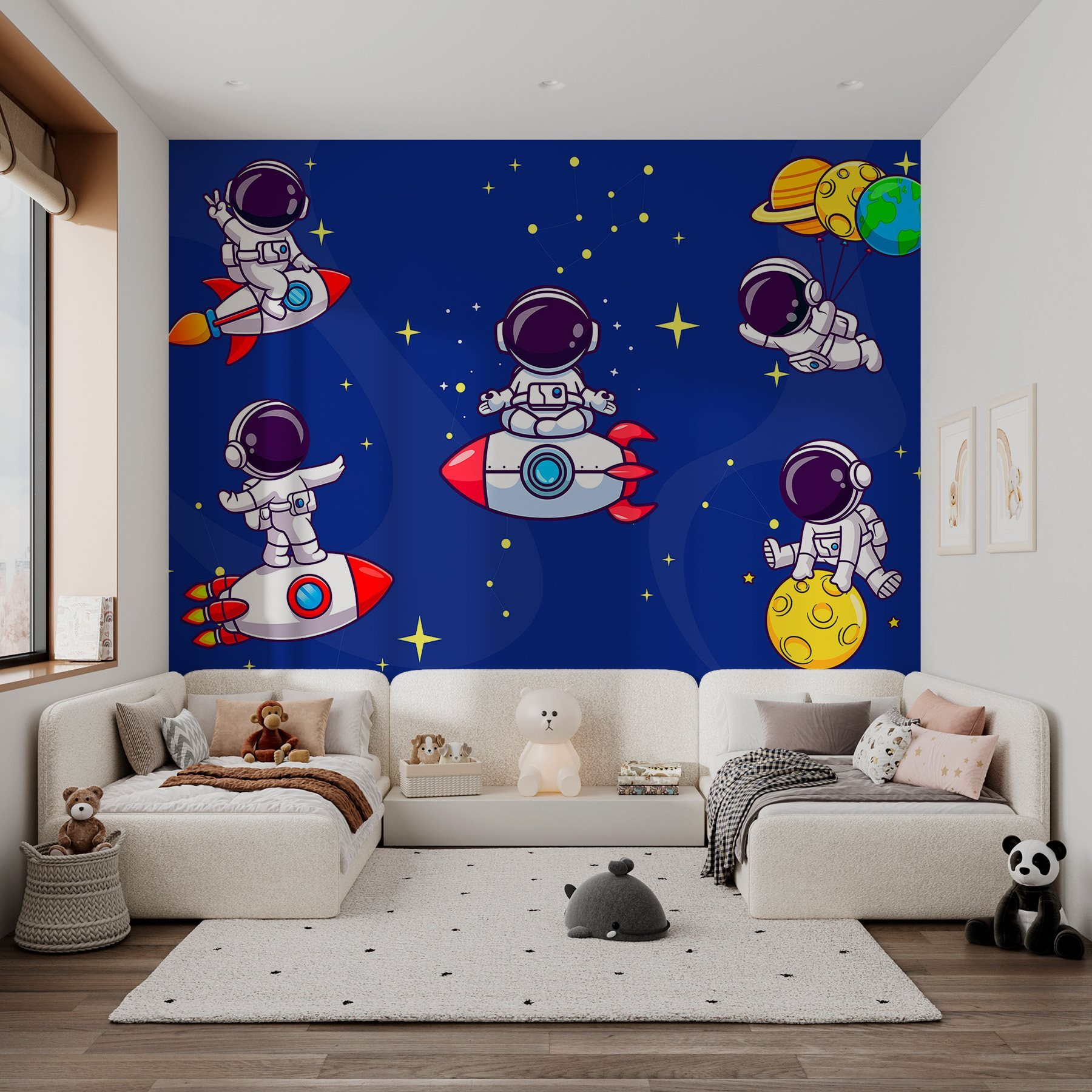 Mit dieser skurrilen Fototapete mit Cartoon-Astronauten, die durch den Weltraum schweben, können Sie sich in eine Galaxie voller Spaß stürzen. Stellen Sie sich vor, Sie betreten ein Zimmer, in dem kleine Entdecker von Raketen aus winken, sich auf dem Mond entspannen und den Kosmos mit Stil erobern. Dieses Wandbild eignet sich perfekt für ein Kinderzimmer oder ein verspieltes Wohnzimmer und lädt zu Tagträumen von interstellaren Abenteuern und sternenklaren Nächten ein. Es ist wie ein Ticket ins Universum, ohne die Couch zu verlassen. Ob zur Märchenstunde oder einfach nur für einen gemütlichen Abend, dieses Wandbild verwandelt die Wände in eine Startrampe der Fantasie und Freude. Wer würde nicht gerne zwischen den Sternen schweben?