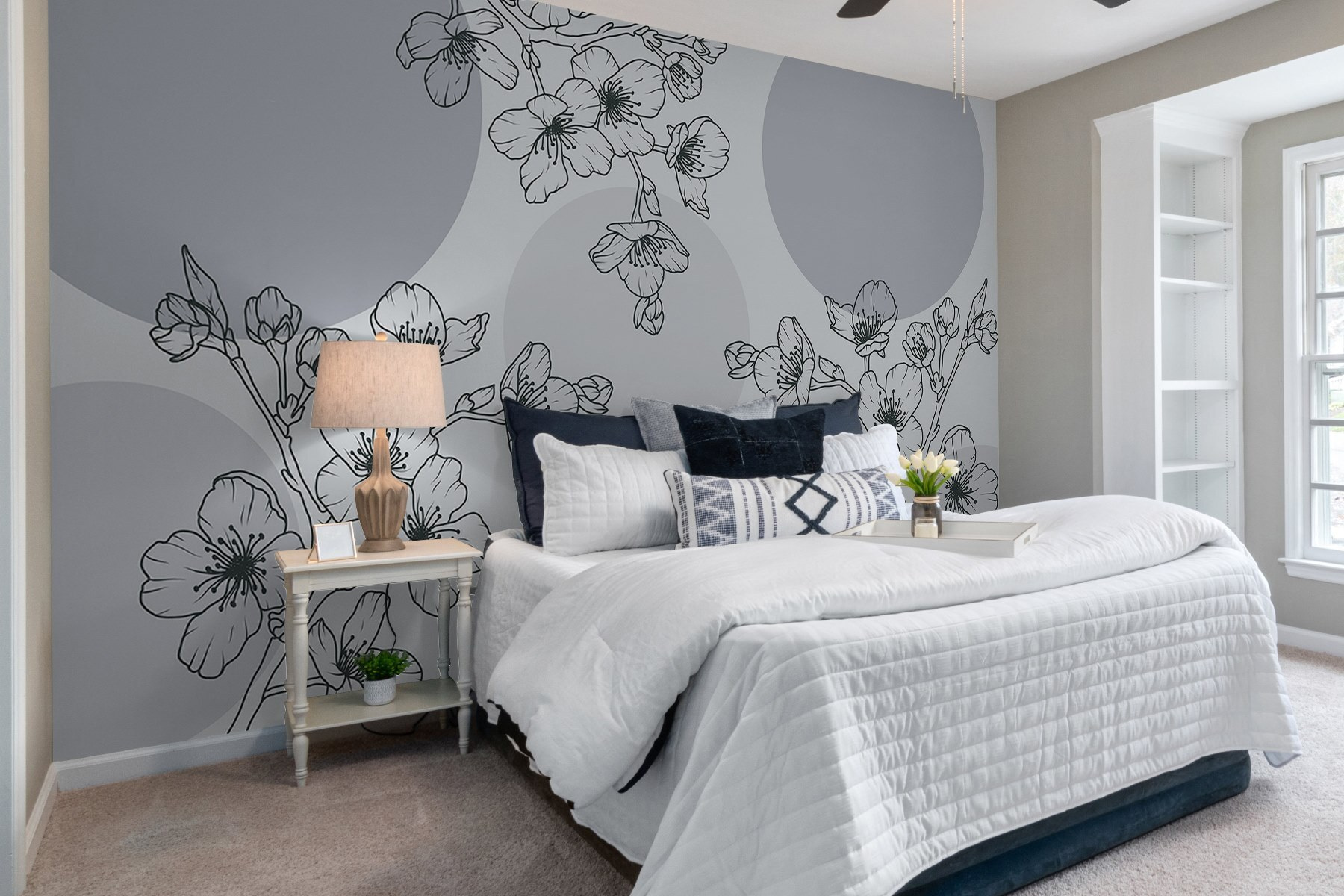 Verwandeln Sie jeden Raum in einen ruhigen Rückzugsort mit diesen zarten Blüten, die vor einem sanften Hintergrund tanzen. Stellen Sie sich vor, Sie betreten einen Raum, der sich wie ein friedlicher japanischer Garten anfühlt, wo Schlichtheit auf Eleganz trifft. Jede Blüte flüstert Geschichten aus der Natur und bringt Ruhe und Achtsamkeit in den Alltag. Die sanfte Farbpalette passt zu so vielen Stilen und schafft eine mühelose Atmosphäre, die selbst durch die chaotischsten Tage nicht gestört werden kann. Es ist, als ob man sich die Schönheit der Natur ins Haus holt – perfekt für die Tage, an denen man nicht nach draußen gehen kann. Lassen Sie Ihre Wände erblühen!