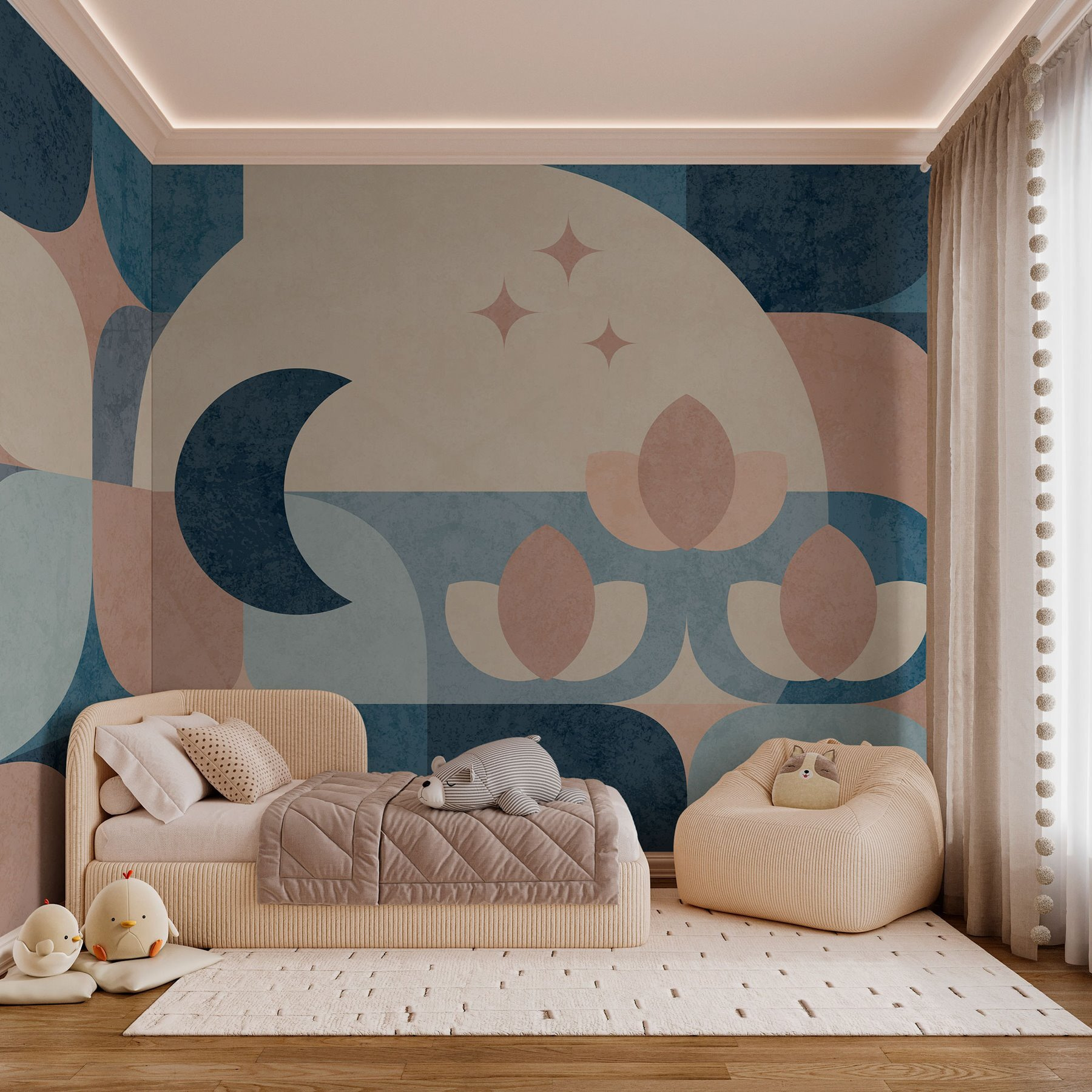 Verwandeln Sie jede Wand in einen Gesprächsanlass mit diesem atemberaubenden geometrischen Wandbild in Blau und Rosa. Es ist wie eine gemütliche Umarmung für Ihr Zimmer – kühn und doch beruhigend, mit Formen, die über die Oberfläche tanzen. Stellen Sie sich vor, Sie schlürfen einen Kaffee und verlieren sich in der ruhigen Ausstrahlung. Jede Kurve und jeder Winkel lädt das Auge ein, zu schweifen und Ideen für die kreativen Köpfe da draußen zu wecken. Dieses Design eignet sich perfekt für ein Wohnzimmer, ein Büro zu Hause oder sogar ein verspieltes Kinderzimmer, denn es strahlt Wärme aus und ist gleichzeitig ein Statement. Fügen Sie ein wenig Charme hinzu, und beobachten Sie, wie Ihr Raum zum Leben erwacht. Das ist Wandkunst, die sich wie ein Tagtraum anfühlt.