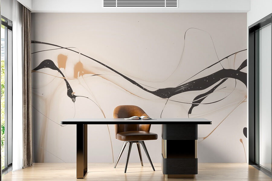 Verwandeln Sie jede Wand in eine auffällige Leinwand mit diesem faszinierenden Wandbild. Die kühne Mischung aus Schwarz und Hellbraun vor einem hellen Hintergrund erzeugt einen spielerischen Tanz der Farben, der Kreativität und Gespräche anregen kann. Stellen Sie sich vor, Sie schlürfen einen Kaffee und betrachten diese sanften Linien, die sich kräuseln und winden – es ist, als würden Sie einen ruhigen Fluss vorbeifließen sehen. Es eignet sich perfekt für Wohnzimmer, Heimbüros oder auch gemütliche Ecken und verleiht ihnen einen Hauch von modernem Flair. Es ist Kunst, es ist ein Statement, und es könnte Besucher dazu inspirieren, ein wenig länger zu verweilen. Wer würde sich nicht wünschen, dass ein Stück wie dieses seinen Tag erhellt?