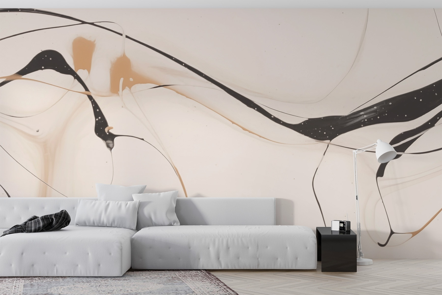 Verwandeln Sie jede Wand in eine auffällige Leinwand mit diesem faszinierenden Wandbild. Die kühne Mischung aus Schwarz und Hellbraun vor einem hellen Hintergrund erzeugt einen spielerischen Tanz der Farben, der Kreativität und Gespräche anregen kann. Stellen Sie sich vor, Sie schlürfen einen Kaffee und betrachten diese sanften Linien, die sich kräuseln und winden – es ist, als würden Sie einen ruhigen Fluss vorbeifließen sehen. Es eignet sich perfekt für Wohnzimmer, Heimbüros oder auch gemütliche Ecken und verleiht ihnen einen Hauch von modernem Flair. Es ist Kunst, es ist ein Statement, und es könnte Besucher dazu inspirieren, ein wenig länger zu verweilen. Wer würde sich nicht wünschen, dass ein Stück wie dieses seinen Tag erhellt?