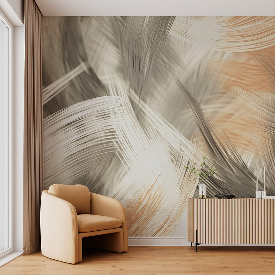Verwandeln Sie jeden Raum mit diesen abstrakten Pinselstrichen-Wandbildern. Sanfte Töne verschmelzen auf eine Weise, die sich beruhigend und einladend anfühlt – wie eine warme Umarmung nach einem langen Tag. Stellen Sie es sich vor: Sie wachen in einem gemütlichen Zimmer auf und die sanften Kurven und Wirbel fallen Ihnen ins Auge. Es ist beruhigend, und doch versprühen die dynamischen Striche ein wenig Freude. Stellen Sie sich vor, Freunde kommen zu Besuch und bewundern, wie mühelos schick Ihre Wohnung aussieht. Wahrscheinlich werden Sie sie dabei ertappen, wie sie es gedankenverloren anstarren. Diese Fototapete dekoriert nicht nur, sie bringt auch einen Hauch von Persönlichkeit mit. Perfekt für alle, die moderne Kunst zu schätzen wissen, aber trotzdem nicht aufdringlich sein wollen. Eine wirklich reizvolle Ergänzung für jede Wand!