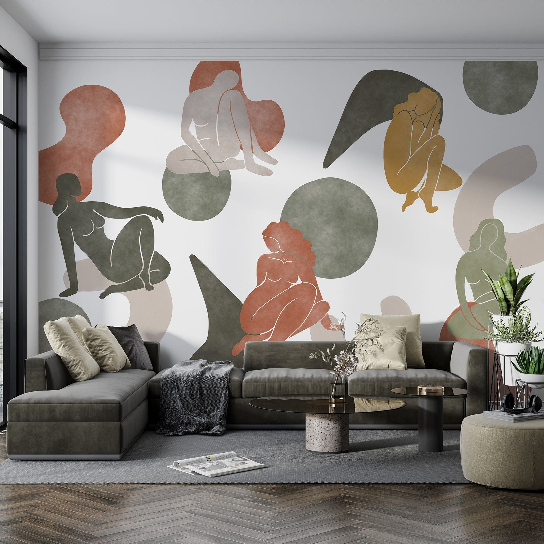 Verwandeln Sie jede Wand in eine spielerische Galerie mit dieser Wandmalerei von Frauen, die sich im Kreis versammelt haben. Es ist wie ein künstlerischer Chat, der die einfachen Momente einfängt, in denen Freunde Geschichten austauschen – wer würde diese Stimmung nicht lieben? Die sanften Farben und abstrakten Formen laden zur Ruhe ein und regen die Kreativität an. Stellen Sie sich vor, Sie machen es sich in einer gemütlichen Ecke bequem, schlürfen Tee und verlieren sich in der Kunst. Es ist eine schöne Erinnerung an Verbundenheit und Kraft, perfekt für Wohnzimmer, Ateliers oder sogar eine ruhige Leseecke. Lassen Sie dieses Stück Leben in Ihren Raum bringen!