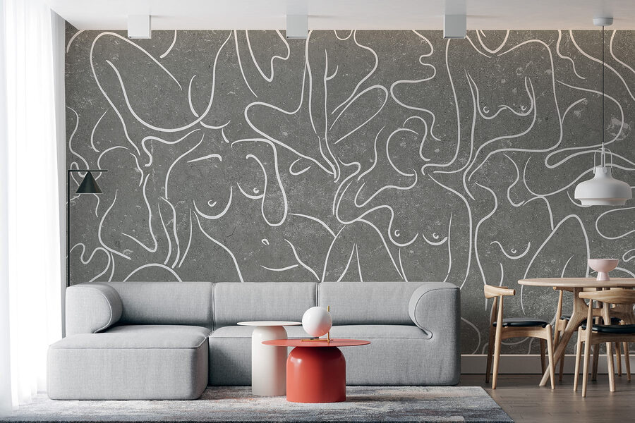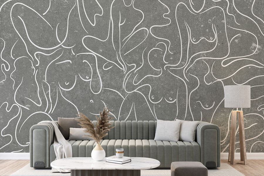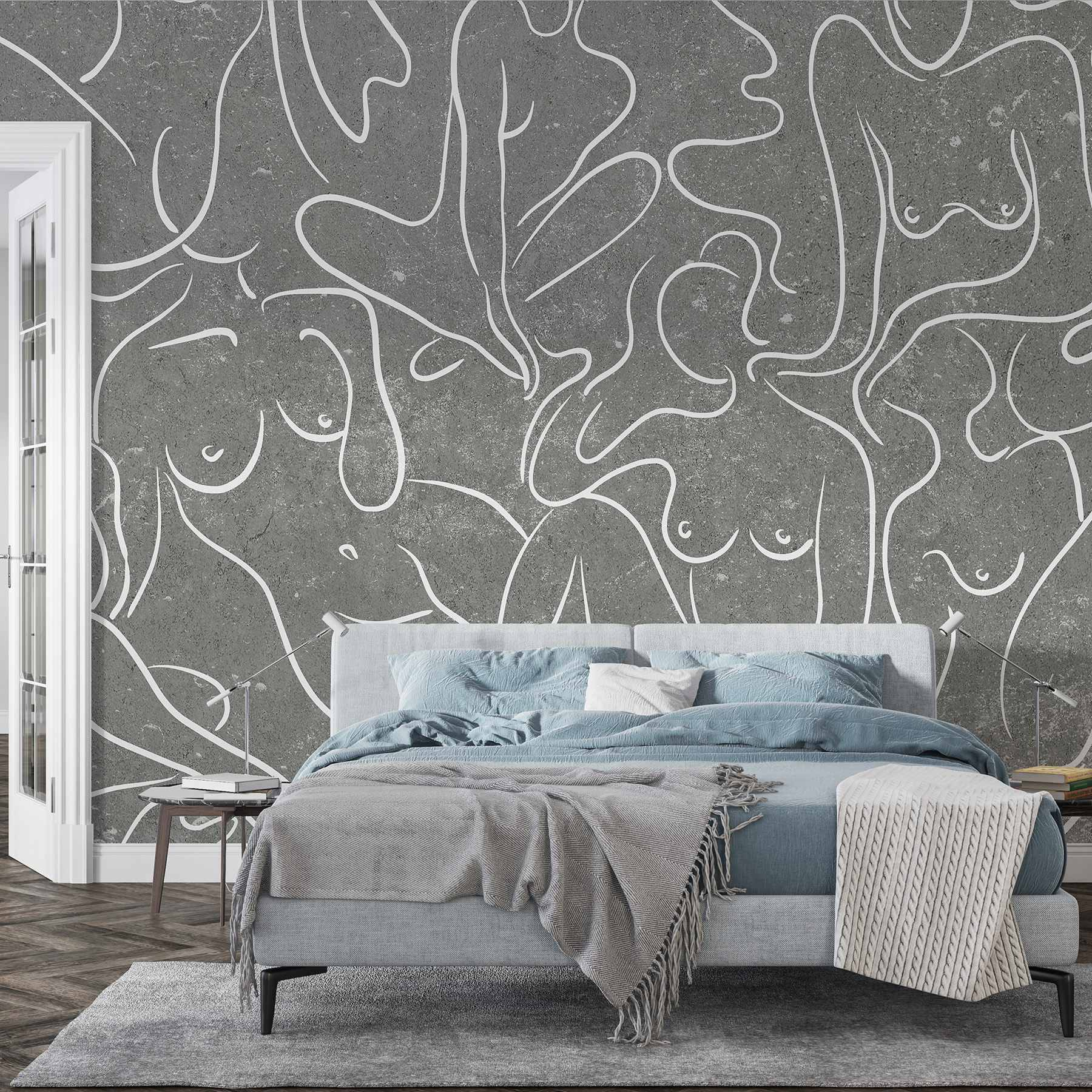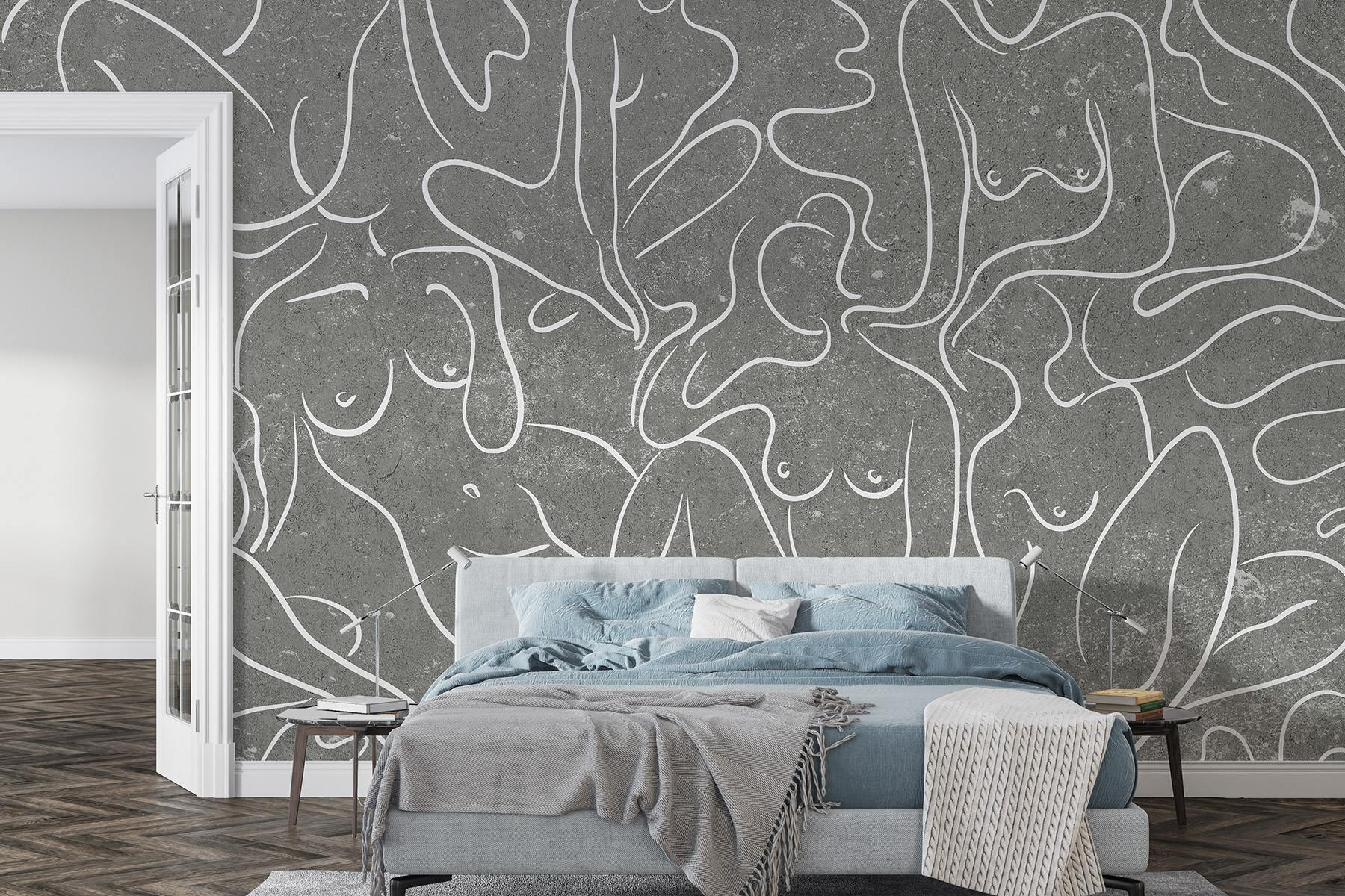 Verwandeln Sie Ihren Raum mit dieser fesselnden Fototapete, die einen verspielten Tanz von weiblichen Körperzeichnungen zeigt. Mit seinen fließenden Linien vor einem gedämpften Hintergrund verleiht dieses Kunstwerk einen sanften Hauch von Eleganz, der Kreativität verströmt. Stellen Sie sich vor, Sie betreten einen Raum und spüren sofort, wie Sie von einer Welle der Inspiration überrollt werden – eine warme Umarmung der Kunst, die zu Gesprächen anregt. Freunde werden die skurrile und doch raffinierte Ausstrahlung bewundern, die es für Wohnbereiche oder gemütliche Ecken perfekt macht. Es ist, als hätten Sie eine Galerie direkt in Ihrem Zuhause. Dieses Wandbild lädt dazu ein, die Schönheit in der Einfachheit zu schätzen, und jeder Blick offenbart etwas Neues. Ein echter Blickfang!