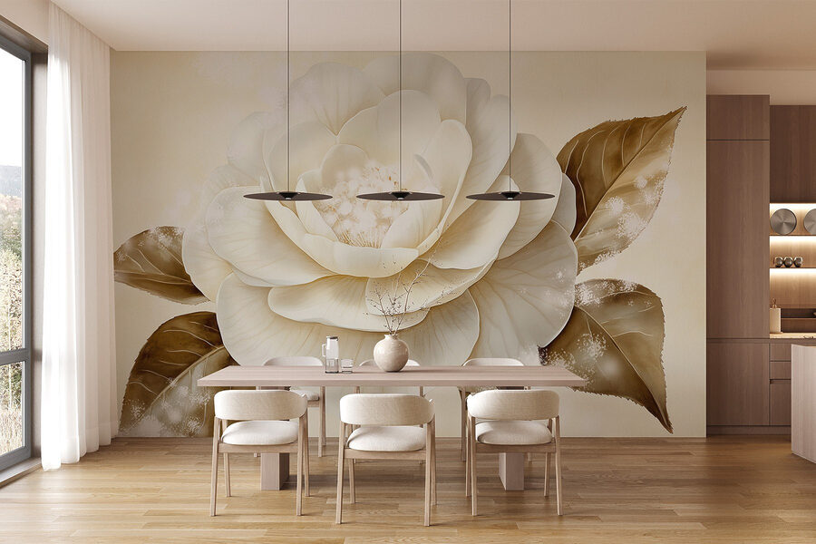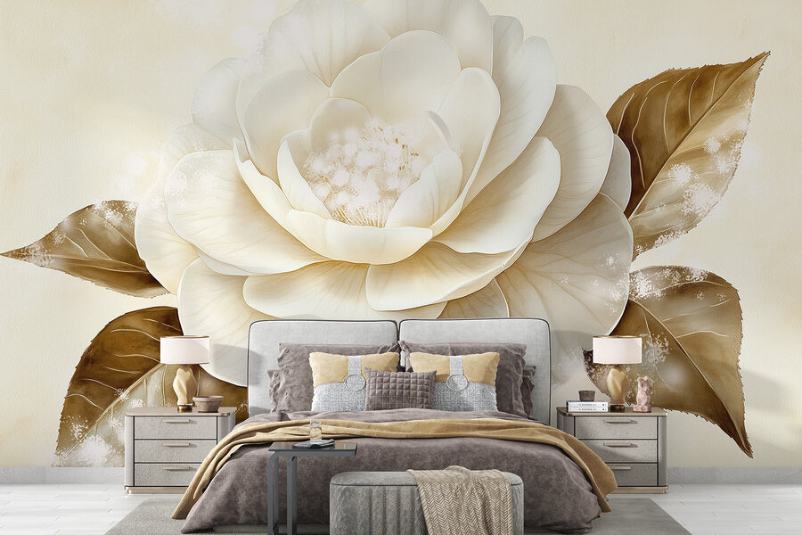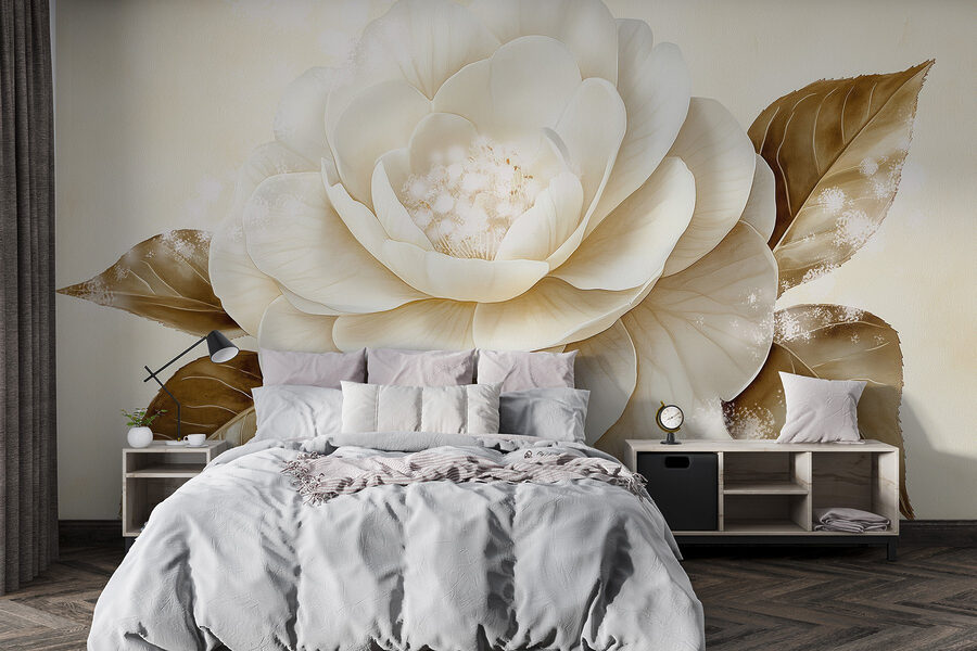 Verwandeln Sie Ihren Raum mit dieser atemberaubenden Fototapete, die eine schöne weiße Blume mit warmen braunen Blättern kombiniert. Stellen Sie sich vor, Sie betreten einen Raum, in dem dieses Kunstwerk Sie begrüßt und ihn mit einem Gefühl der Ruhe und dem Charme der Natur erfüllt. Die sanften Farbtöne und zarten Details ziehen den Blick auf sich und machen es perfekt für ein gemütliches Wohnzimmer oder ein ruhiges Schlafzimmer. Der Besucher könnte innehalten, um seine Schönheit zu bewundern, vielleicht sogar inspiriert werden, sich mit einem guten Buch in der Nähe zu entspannen. Es ist, als ob man sich ein Stückchen Natur ins Haus holt – nur ohne die Pollen. Eine einfache Veränderung, die Freude macht, finden Sie nicht auch?