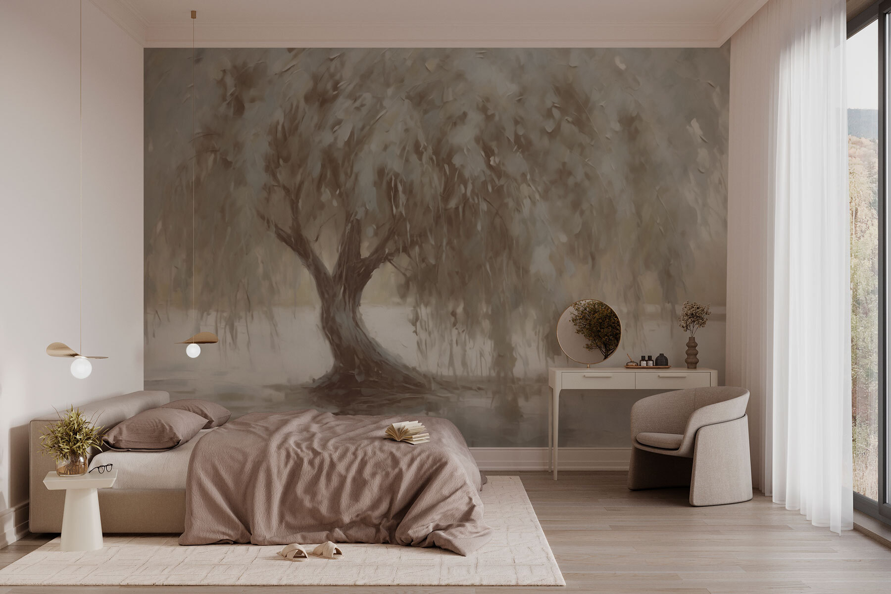 Verwandeln Sie Ihren Raum mit dem beruhigenden Charme dieser Fototapete, die einen ruhigen Baum zeigt, der sich anmutig in ruhigem Wasser spiegelt. Es ist, als hätte man eine friedliche Flucht direkt zu Hause. Dieses Kunstwerk ist perfekt geeignet, um jedem Raum einen Hauch von Natur zu verleihen und vermittelt Entspannung und Gelassenheit. Stellen Sie sich vor, wie Sie es sich mit einem Buch und einem warmen Getränk in der Hand gemütlich machen, während Sie die sanften Farbtöne und die verträumte Stimmung betrachten. Es ist nicht nur Dekoration, sondern strahlt eine sanfte Ruhe aus, die Sie wie eine warme Decke an einem kühlen Tag umhüllt. Ihre Wand könnte der gemütlichste Platz im Haus werden!