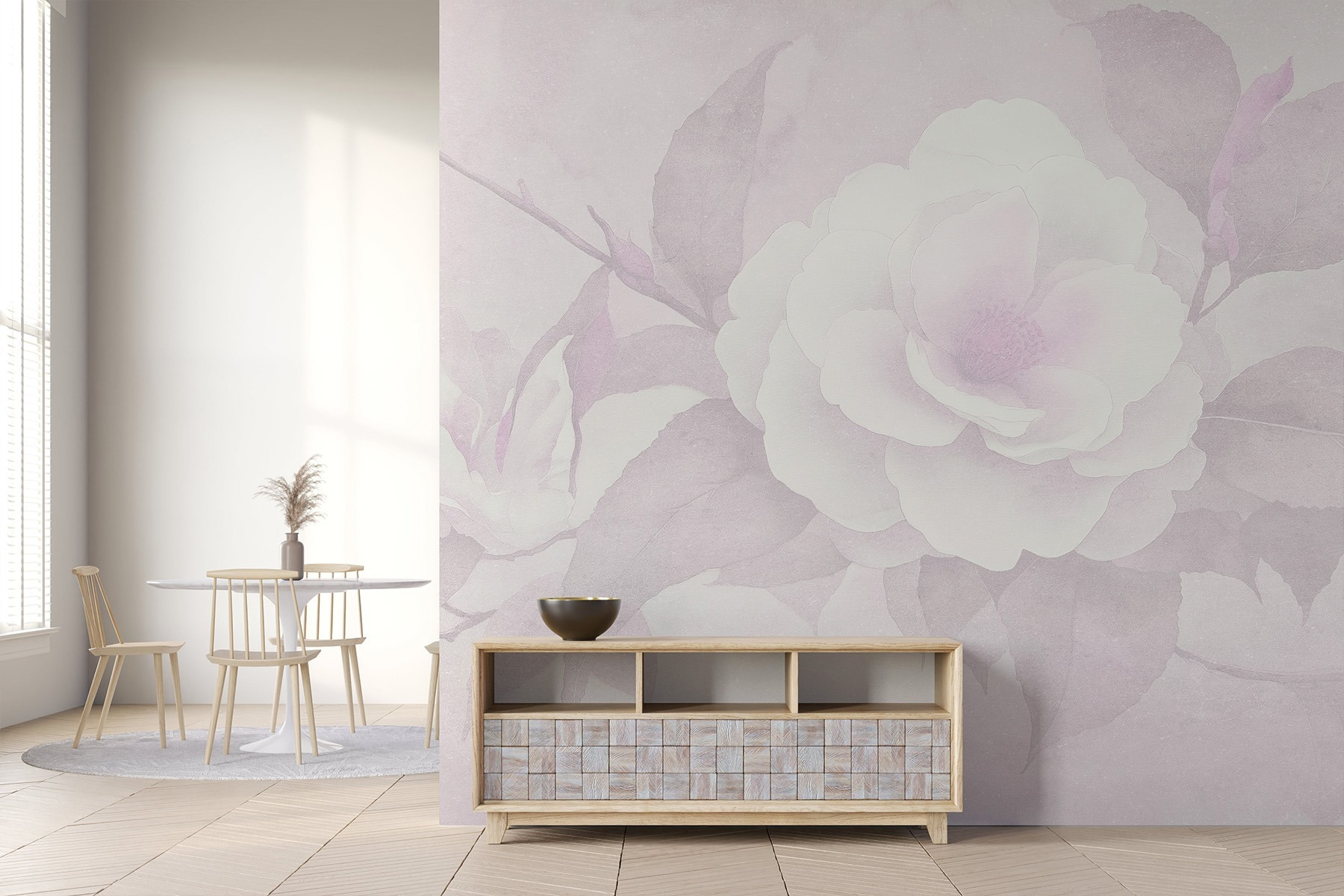 Verwandeln Sie Ihren Raum in einen ruhigen Rückzugsort mit der Wandtapete Weiße Blume mit Blättern. Stellen Sie sich vor, Sie betreten einen Raum, der Ruhe ausstrahlt, mit zarten Blüten, die sich anmutig über die Wände erstrecken. Es ist wie ein eigener Garten, nur ohne Unkrautjäten! Die sanften Farbtöne verbreiten eine frische Atmosphäre und eignen sich perfekt für entspannte Abende oder ein gemütliches Brunch mit Freunden. Vielleicht ertappt man sich sogar dabei, wie man von einem gemütlichen Café mit der perfekten Tasse Kaffee träumt. Dieses Wandbild weckt diese kleinen Momente der Freude und Inspiration. Holen Sie sich die Leichtigkeit der Natur ins Haus und lassen Sie Ihren Raum aufblühen!
