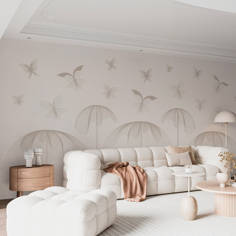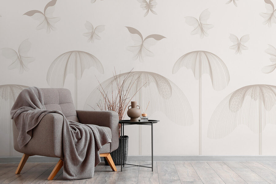 Bringen Sie einen Hauch von frischer Luft in Ihren Raum mit dieser bezaubernden Fototapete, auf der Schmetterlinge inmitten von zarten Blumen flattern. Stellen Sie sich vor, dass Sie jedes Mal, wenn Sie den Raum betreten, in einen heiteren Garten treten. Die sanft geschwungenen Muster und die gedämpften Farbtöne schaffen eine ruhige Kulisse, die eine friedliche Stimmung verbreitet. Es ist, als würden Ihre Wände Ihnen süße Worte zuflüstern und Sie zum Entspannen auffordern. Zusammen mit einem gemütlichen Sessel und einem guten Buch haben Sie die perfekte kleine Nische gefunden. Mal ehrlich, wer würde nicht gerne in einem Schmetterlingsparadies Tee trinken? Verwandeln Sie Ihr Zuhause in ein skurriles Refugium, das jeden Tag Freude bereitet.