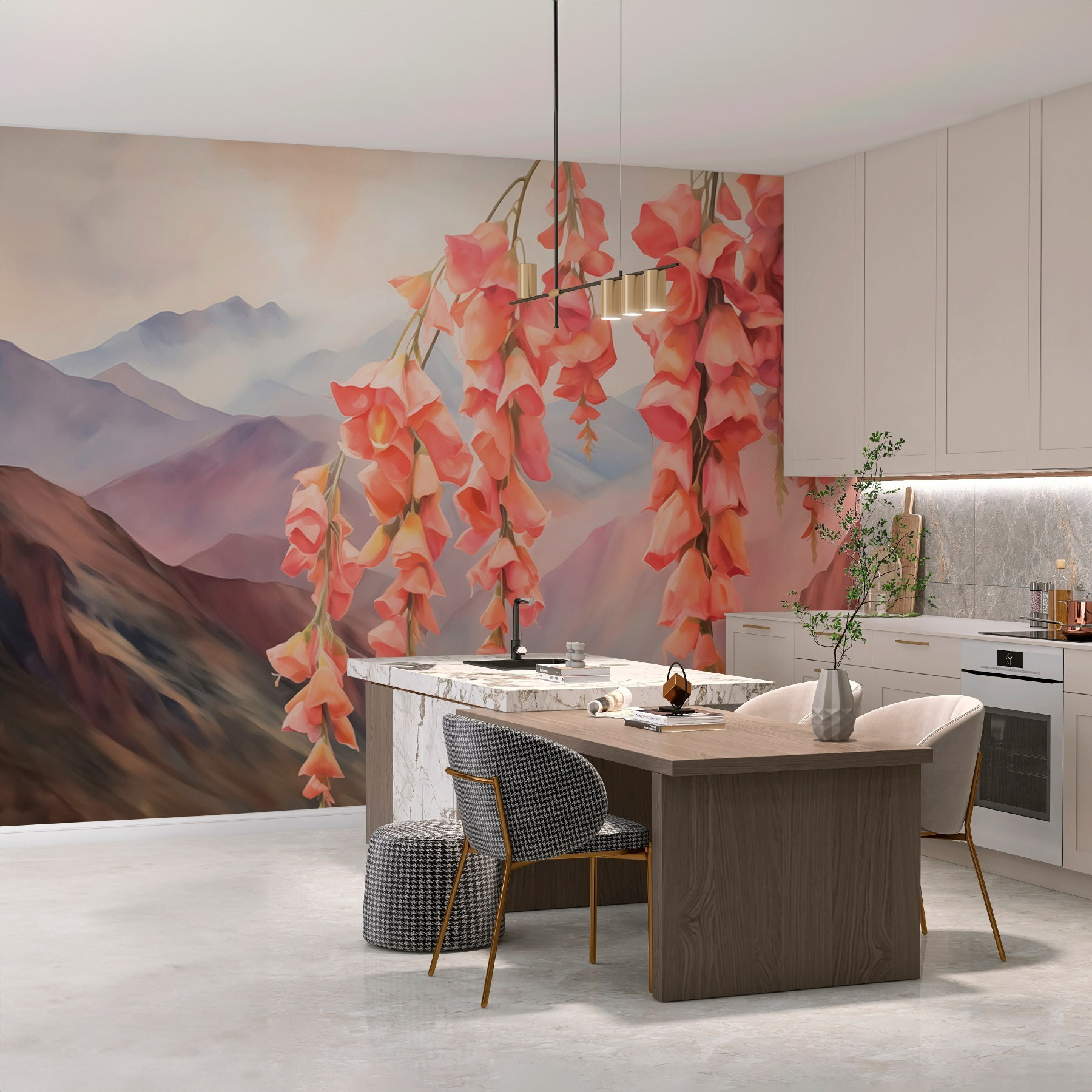 Verändern Sie jeden Raum mit dieser atemberaubenden Fototapete, die eine Kaskade von Blumen zeigt, die sich fast im Wind zu wiegen scheint. Stellen Sie sich vor, Sie betreten einen Raum und haben das Gefühl, dass Sie gerade in einen ruhigen Garten getreten sind, direkt an Ihrer Wand. Die sanften Rosatöne und der weiche Hintergrund schaffen ein Gefühl der Ruhe, perfekt, um einen langweiligen Raum in einen gemütlichen Rückzugsort zu verwandeln. Es ist wie eine tägliche Dosis Natur ohne Pflege – kein Gießen erforderlich. Stellen Sie es in ein Wohn- oder Schlafzimmer und beobachten Sie, wie sich die Stimmung hebt. Ihre Freunde werden Ihnen bestimmt ein Kompliment für Ihre neue blumige Ausstrahlung machen, und wer unterhält sich nicht gern über schöne Dekoration? Stellen Sie sich vor, Sie machen es sich zu Hause gemütlich und lassen diese Wand zu einem wunderbaren Gesprächsanlass erblühen.