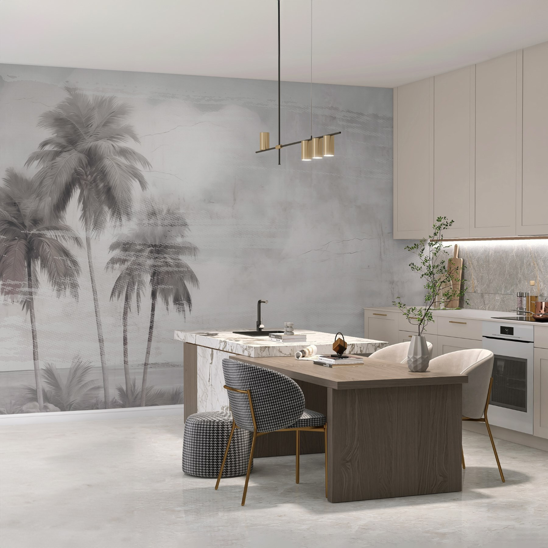 Verwandeln Sie Ihren Raum in einen tropischen Zufluchtsort mit dieser atemberaubenden Fototapete, auf der sich Palmen vor einem sanften Hintergrund elegant wiegen. Stellen Sie sich das sanfte Rascheln der Blätter, die warme Brise und den süßen tropischen Duft vor. Es ist perfekt für einen Raum, der ein wenig Urlaubsstimmung braucht – zum Beispiel für eine Leseecke oder ein Heimbüro. Freunde könnten hereinspazieren und sagen: “Wow, sind wir auf einer Insel?” Ein Hauch von Abenteuer und Entspannung genügt, um Ihren Tag zu erhellen. Außerdem ist es, als ob Sie sich ein Stück Paradies nach Hause holen. Einfach atemberaubend!