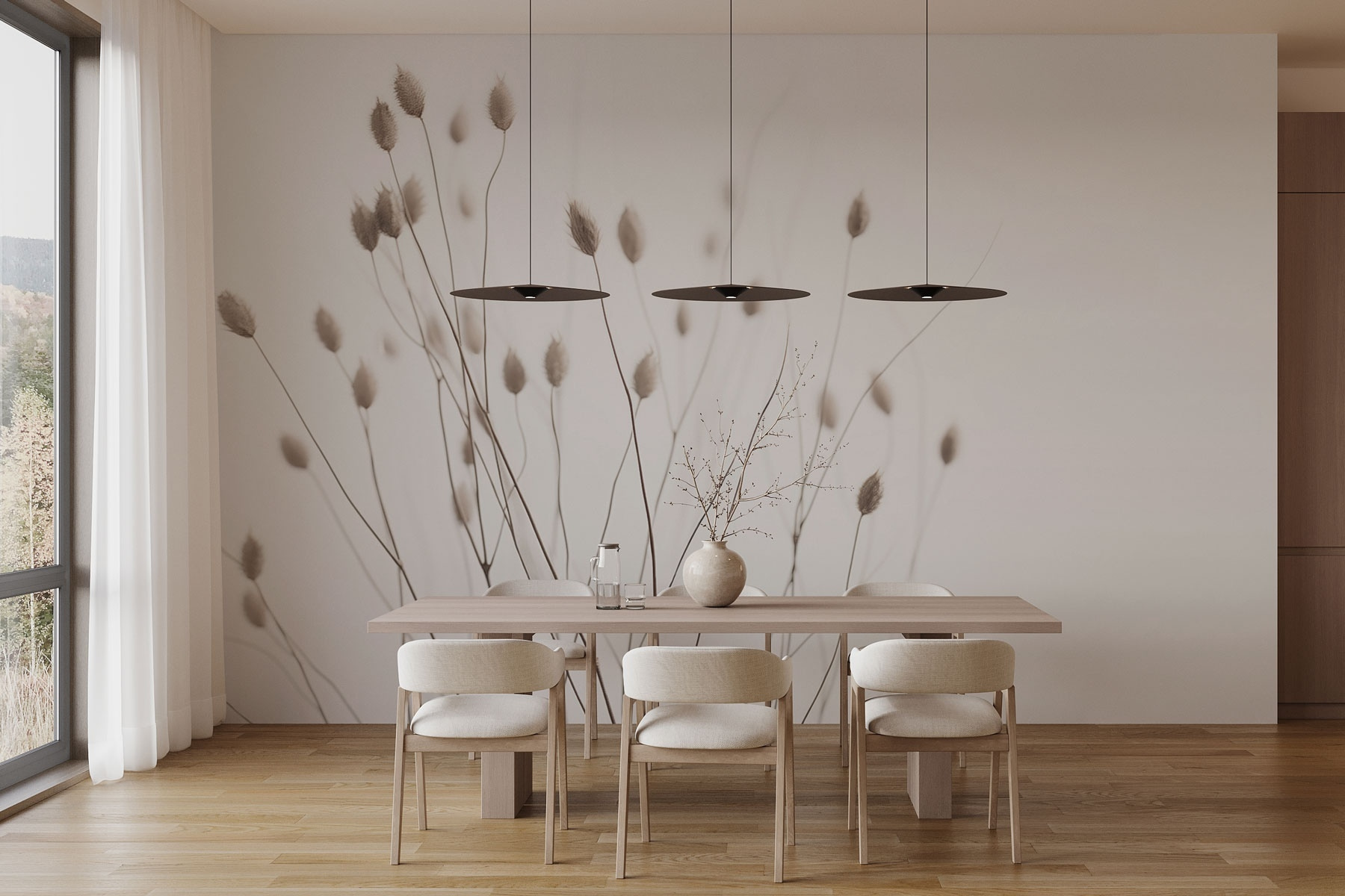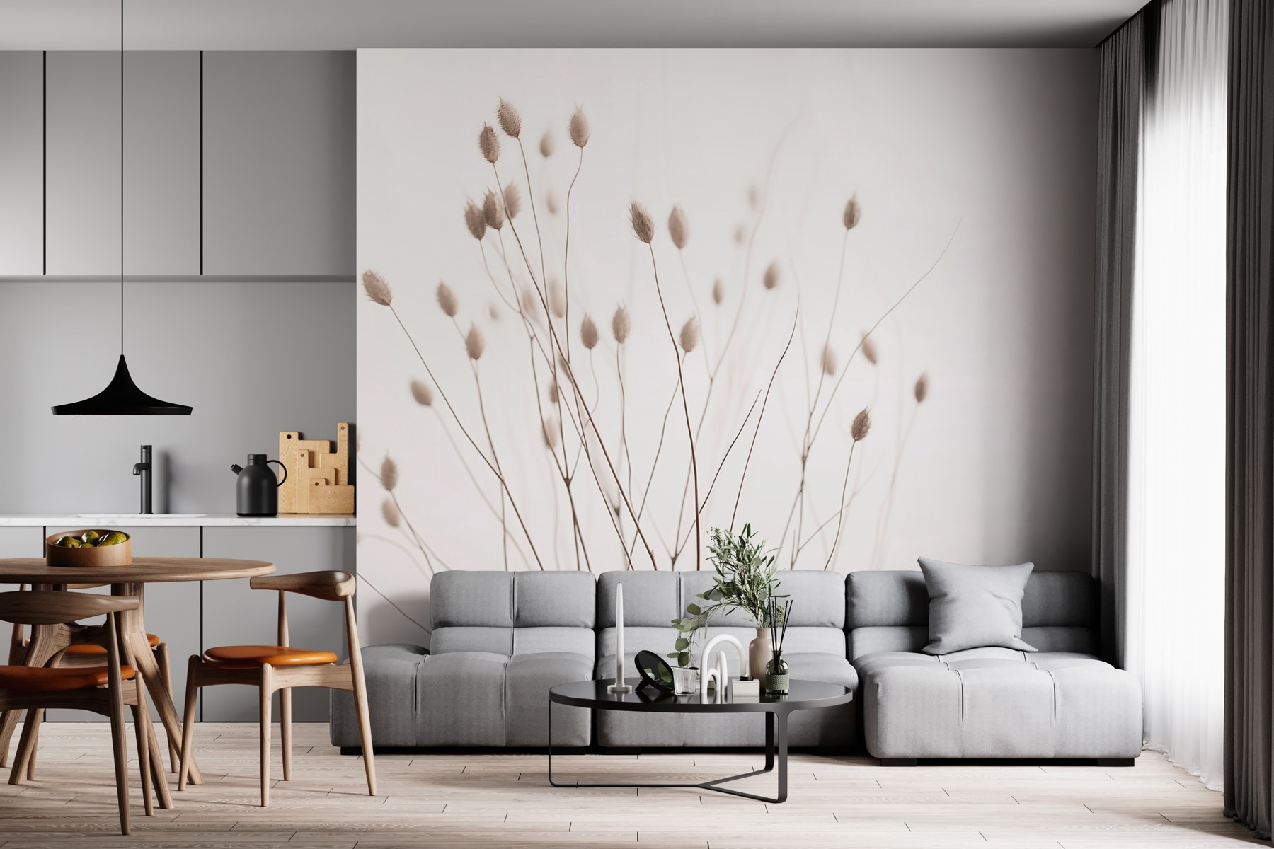 Verwandeln Sie eine schlichte Wand in einen beruhigenden Rückzugsort mit dieser Fototapete, auf der zarte Stängel vor einem sanften Hintergrund tanzen. Stellen Sie sich vor, Sie wachen jeden Morgen mit dieser heiteren Stimmung auf. Es ist, als ob man sich die Natur ins Haus holt und sonnige Wiesen und sanfte Brisen heraufbeschwört. Stellen Sie sich gemütliche Abende mit einem Buch vor, bei denen sich die zarten Farben wie eine sanfte Umarmung um Sie legen. Das ist nicht nur Dekoration, sondern eine Einladung zum Durchatmen und Entspannen. Außerdem lässt er sich wunderbar mit verschiedenen Stilen kombinieren und ist somit eine vielseitige Wahl für jeden Raum. Denken Sie nur an all die Komplimente von Freunden – wer würde sich das nicht wünschen?