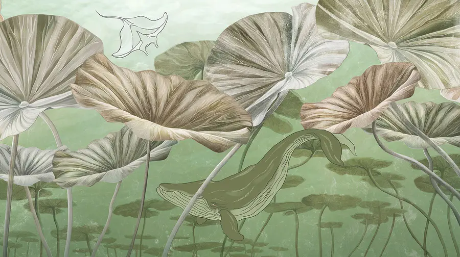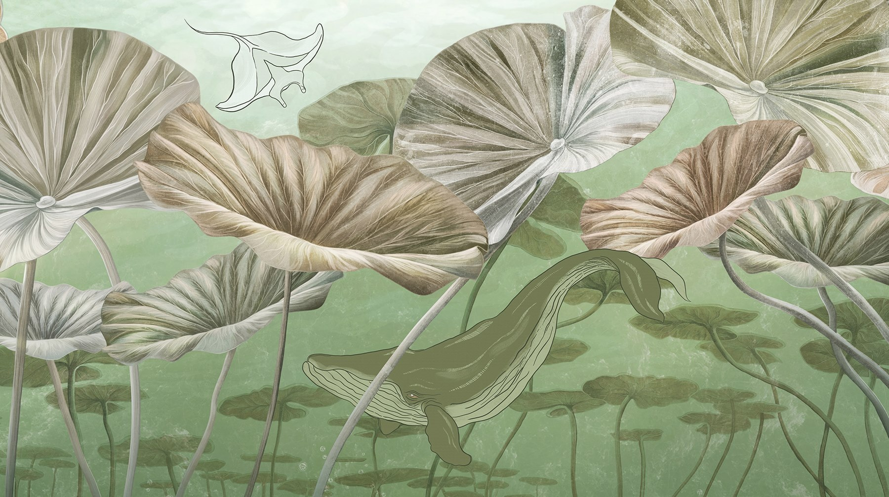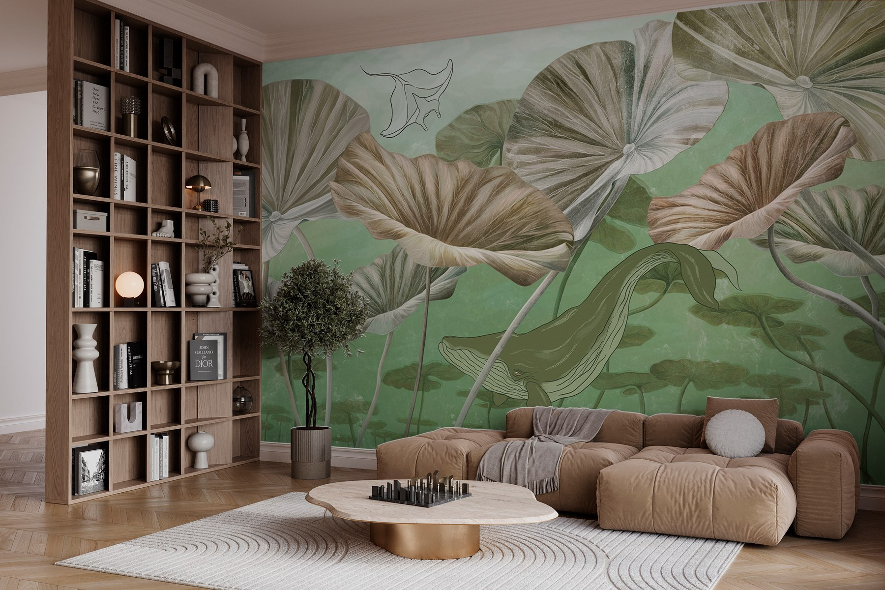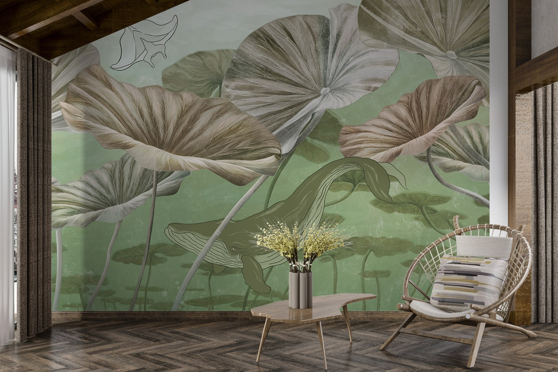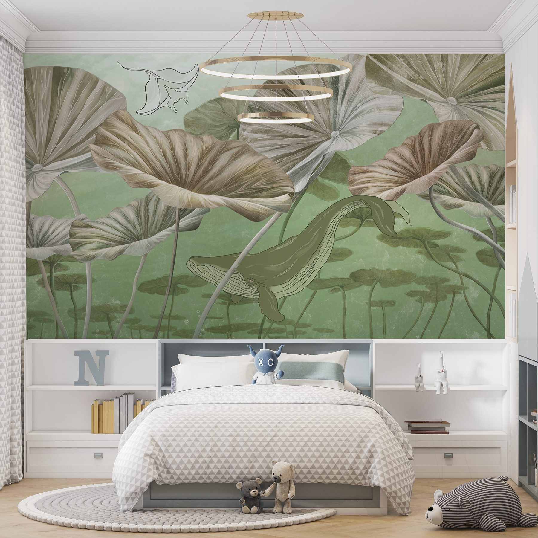 Tauchen Sie ein in die heitere Atmosphäre dieser atemberaubenden Fototapete, die einen anmutigen Wal zeigt, der durch ruhige Gewässer gleitet. Stellen Sie sich vor, dass sich Ihr Raum in eine Unterwasseroase verwandelt, in der sich jeder Blick wie eine friedliche Flucht anfühlt. Die sanften Grün- und Erdtöne beruhigen nicht nur die Sinne, sondern laden auch zum Verweilen im Freien ein und schaffen eine entspannte Atmosphäre. Perfekt für Naturliebhaber oder alle, die einen Hauch von Ruhe brauchen, fügt dieses Wandbild eine Ebene der Kunst hinzu, die Neugierde und Staunen hervorruft. Es ist, als hätte man ein kleines Stück Ozean zu Hause – ganz ohne Salzwasser. Die sanfte Präsenz des Wals erhellt mühelos einen Raum und regt zu Gesprächen und Tagträumen an. Warum also nicht mit diesem wunderschönen Meeresbewohner ein Gefühl von Abenteuer an Ihre Wände bringen?