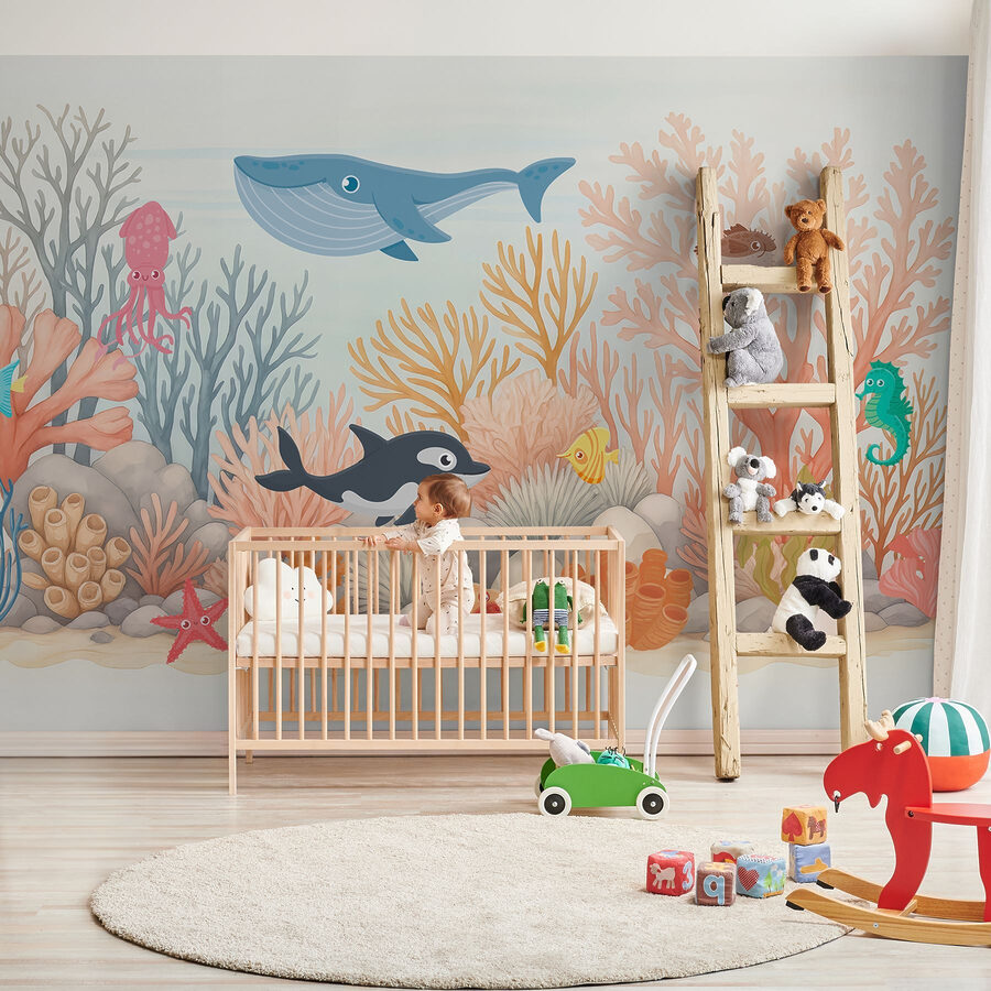 Tauchen Sie ein in eine lebendige Unterwasserwelt mit diesem entzückenden Wandbild mit verspielten Fischen und skurrilen Korallen. Stellen Sie sich ein Kinderzimmer vor, das sich in eine lebhafte Meeresszene verwandelt und die Kleinen jeden Tag an einen magischen Strand entführt. Es ist, als ob man sich ein Stück Meer ins Haus holt – ohne den Sand zwischen den Zehen! Eltern werden es zu schätzen wissen, wie es Fantasie und Neugier anregt, während Kinder es lieben werden, bunte Meereskreaturen zu entdecken. Es ist perfekt, um Spielzimmer oder Kinderzimmer zu verschönern und erinnert daran, dass jeder Tag ein bisschen wie ein Strandabenteuer sein kann. Einfach bezaubernd!