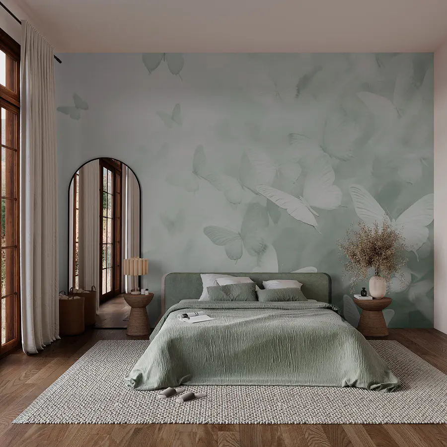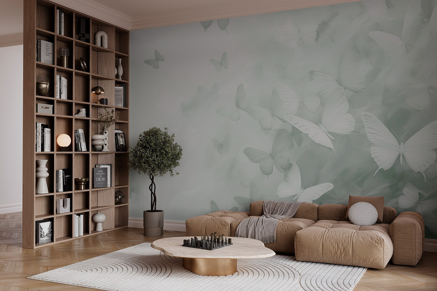 Verwandeln Sie Ihren Raum mit dieser bezaubernden Fototapete, die einen Schwarm von Schmetterlingen im Flug zeigt. Stellen Sie sich vor, Sie schlürfen Ihren Morgenkaffee inmitten dieser zarten Kreaturen, die sanft vor einem ruhigen Hintergrund schweben, als würden Sie in einen heiteren Traum eintauchen. Dieses Kunstwerk eignet sich perfekt für eine gemütliche Leseecke oder zur Aufhellung eines Flurs und vermittelt eine Leichtigkeit, die sowohl erfrischend als auch beruhigend wirkt. Freunde werden lächeln und kommentieren, wie es Ihrem Zuhause ein luftiges Gefühl verleiht. Es geht doch um die kleinen Dinge, die das Leben schöner machen, oder? Wer würde es nicht lieben, wenn ein bisschen Laune durch die Gegend flattert?