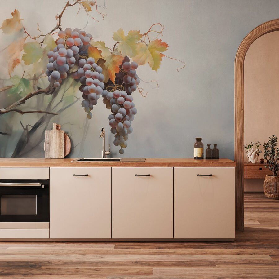 Verwandeln Sie Ihren Raum mit dieser bezaubernden Fototapete, die eine Traube an einer Weinrebe zeigt. Stellen Sie sich vor, Sie betreten einen Raum, der sich wie ein sonnendurchfluteter Weinberg anfühlt – satte, leuchtende Farben und eine sanfte, verträumte Atmosphäre. Es ist, als ob man sich ein Stück Natur ins Haus holt, perfekt, um eine oft triste Wand zu verschönern. Freunde werden sich eingeladen fühlen, sich zurückzulehnen und ein Glas Wein zu genießen, auch wenn es sich nur um Traubensaft handelt. Diese Fototapete ist nicht nur ein echter Blickfang, sondern regt auch zu Gesprächen über faule Nachmittage, Picknicks und all die schönen Momente an, die das Leben ein wenig versüßen. Perfekt für Küchen, Essbereiche oder überall dort, wo man einen Hauch von natürlichem Charme gebrauchen kann!