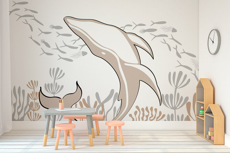 Verwandeln Sie jeden Raum in ein heiteres Unterwasserparadies mit dieser entzückenden Fototapete, auf der Delfine anmutig durch den Ozean schwimmen. Stellen Sie sich vor, Sie betreten einen Raum, aus dem diese verspielten Kreaturen direkt herauszuspringen scheinen und eine Welle der Ruhe mit sich bringen. Die sanften Farben und fließenden Linien fangen eine ruhige Essenz ein und verwandeln eine gewöhnliche Wand in einen atemberaubenden Blickpunkt. Ob in einem gemütlichen Wohnzimmer oder in einem Kinderzimmer, dieses Wandbild verleiht einen Hauch von Magie, der Freude weckt und zum Träumen einlädt. Es ist, als hätte man ein Stück Ozean direkt zu Hause – perfekt für alle, die die Natur lieben und eine erfrischende Atmosphäre schaffen wollen. Tauchen Sie ein in eine Welt voller Launen und Wunder!