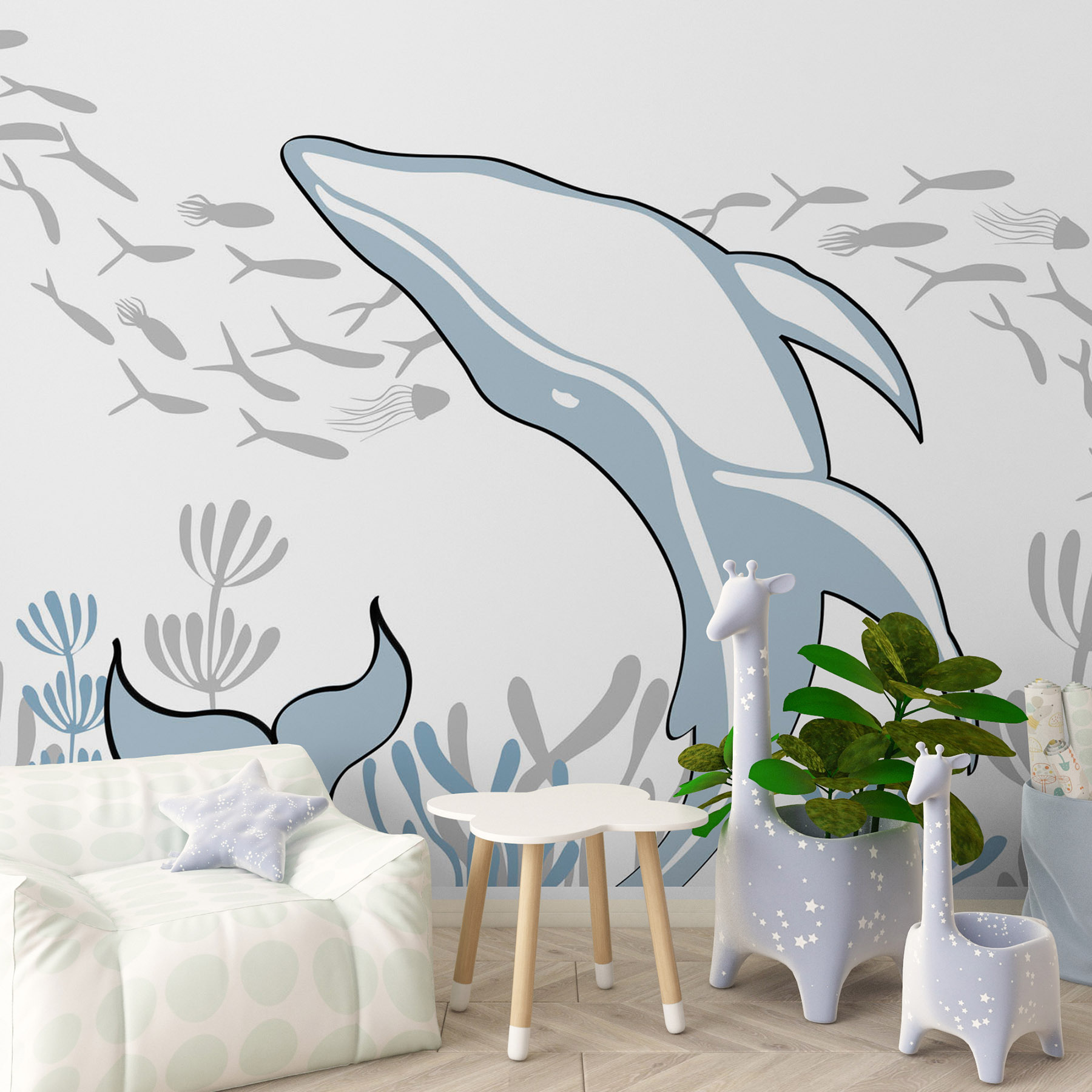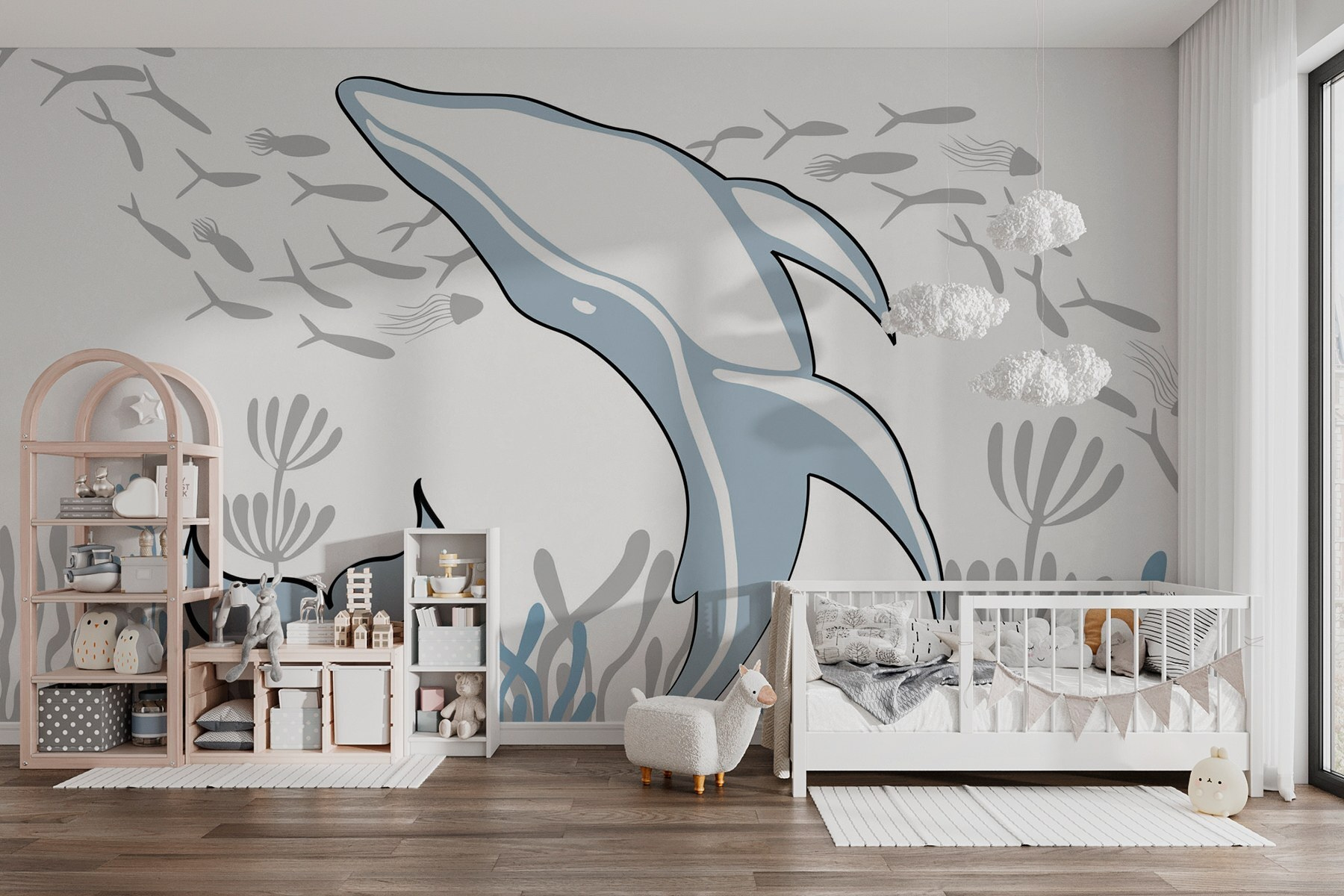 Tauchen Sie mit dieser Fototapete, die einen verspielten Delfin zeigt, der im Meer schwimmt, in eine Welt voller Wunder ein. Stellen Sie sich vor, einen Raum in eine Unterwasseroase zu verwandeln, in der jeder Blick auf die Fototapete Sie zu den sonnenbeschienenen Wellen und der Meeresbrise entführt. Die beruhigenden Farben schaffen eine entspannte Atmosphäre – perfekt für eine gemütliche Leseecke oder ein lebhaftes Spielzimmer. Stellen Sie sich vor, wie Kinder kichern, wenn sie ihre Fischfreunde umherflattern sehen. Stellen Sie sich vor, jeder Tag könnte sich wie ein Strandtag anfühlen. Lassen Sie die Wärme des Ozeans in Ihren Raum einfließen, damit er sich wie ein Urlaub zu Hause anfühlt!