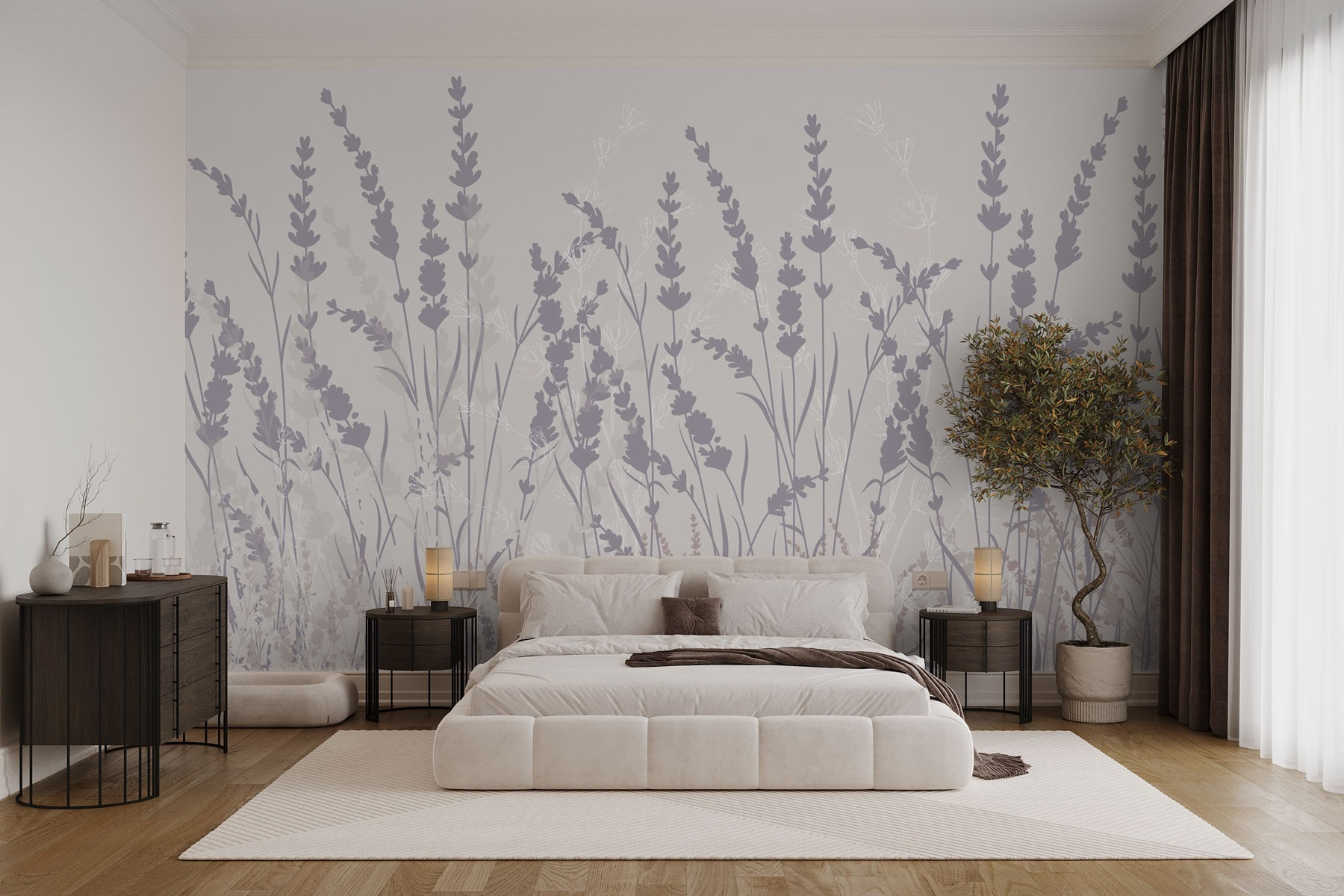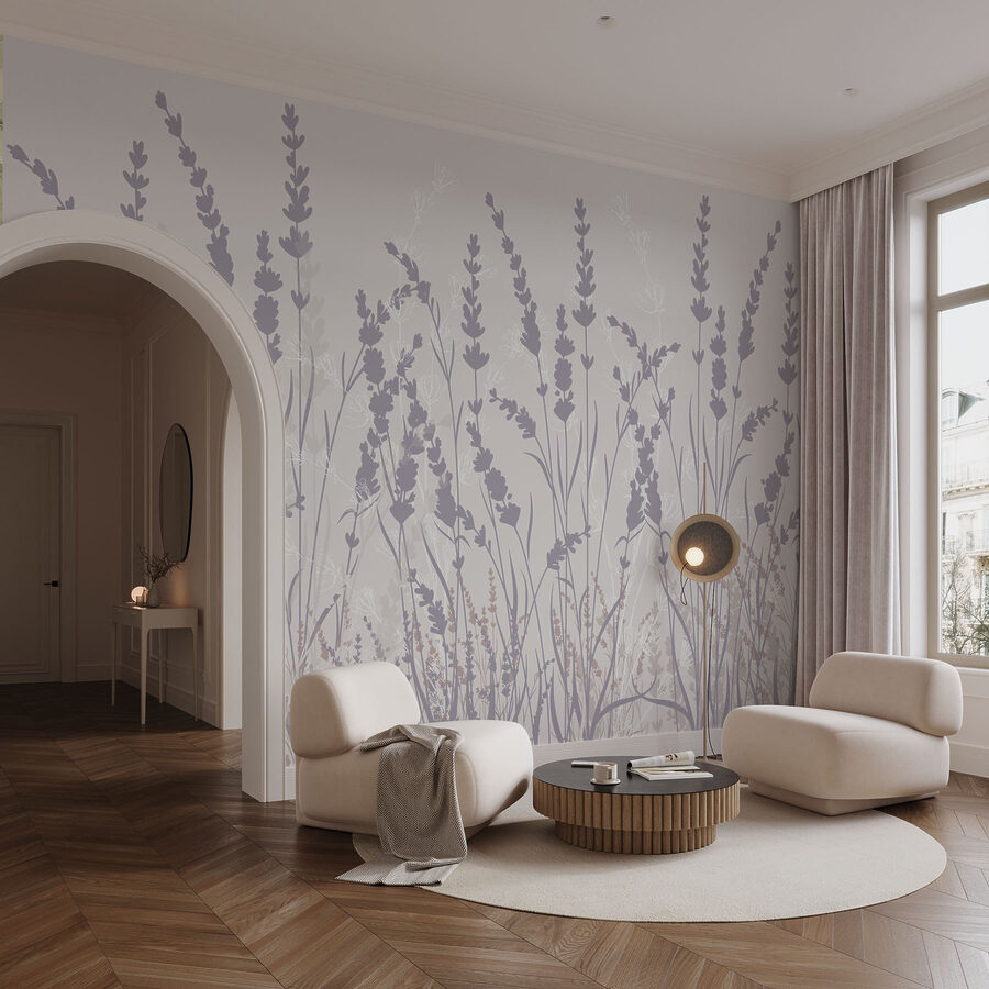 Verwandeln Sie jeden Raum mit dem bezaubernden Wandbild “Soft Hues of Nature’s Elegance”. Stellen Sie sich vor, Sie betreten einen Raum, der in sanfte Lavendel- und gedämpfte Grüntöne getaucht ist, ein Ort der Ruhe direkt in Ihrem Zuhause. Es ist wie eine sanfte Brise, die den Duft blühender Blumen nach einem Regen mit sich bringt – nicht zu überwältigend, einfach perfekt erfrischend. Diese Fototapete ist nicht nur eine Wanddekoration, sondern holt einen friedlichen Garten ins Haus.