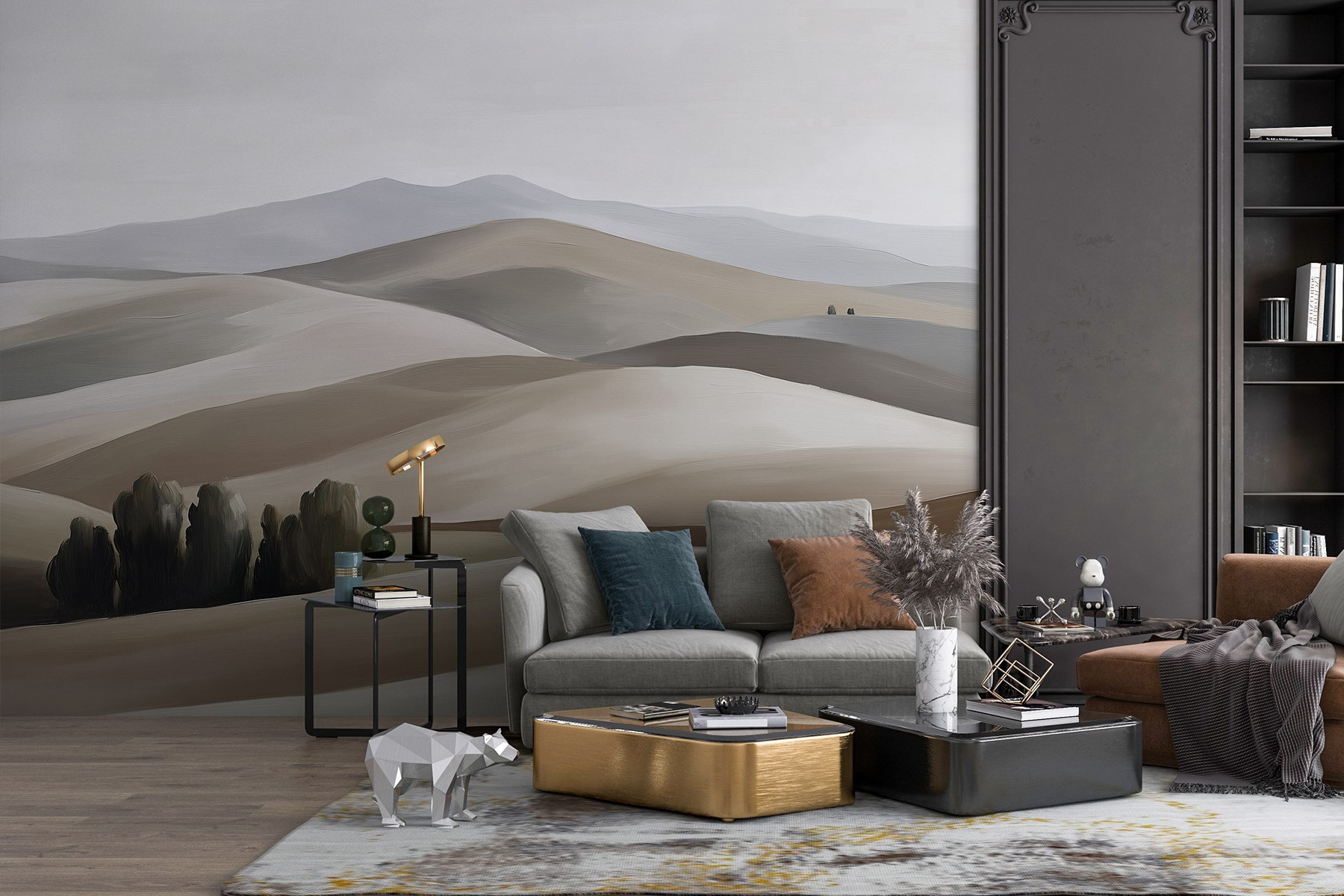 Verwandeln Sie jede Wand in einen ruhigen Zufluchtsort mit dieser schönen Fototapete mit sanften Hügeln und Bäumen. Es bringt die freie Natur direkt in Ihren Wohnraum – perfekt zum Träumen oder einfach zum Entspannen nach einem langen Tag. Stellen Sie sich vor, Sie schlürfen einen Kaffee, während Sie sich in den sanften, gedämpften Tönen sonnen, die eine friedliche Atmosphäre schaffen. Dieses Wandbild ist nicht nur ein Statement, es strahlt auch Ruhe aus. Es ist, als hätte man eine persönliche Landschaft, die die Stimmung im Raum verändert und ihn offen und frisch wirken lässt. Perfekt für Naturliebhaber oder alle, die ihrem Zuhause einen Hauch von Ruhe verleihen wollen.