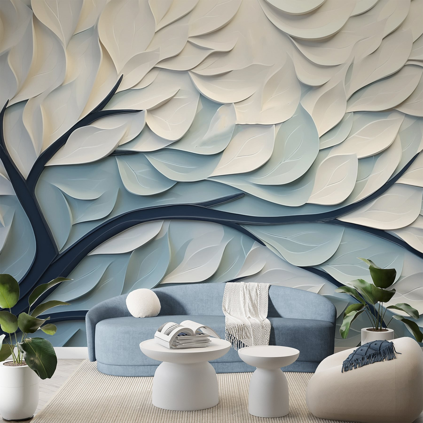 Verwandeln Sie jeden Raum in eine beruhigende Oase mit dieser atemberaubenden Wandtapete aus weißen und blauen Blättern. Stellen Sie sich vor, Sie betreten einen Raum, in dem sich die Zweige über die Wand erstrecken und einen Hauch von Natur ins Innere bringen. Die sanften Farben sind wie eine leichte Brise an einem warmen Tag, die Ruhe ausstrahlt, ohne nach Aufmerksamkeit zu schreien. Perfekt für Wohn- und Schlafzimmer oder sogar für eine gemütliche Ecke, in der Sie Ihren Morgenkaffee schlürfen. Es ist, als hätte man ein Stückchen Natur direkt vor der Nase – ganz ohne gärtnerische Fähigkeiten. Und wer würde sich nicht über eine schöne Kulisse für spontane Tanzpartys freuen?