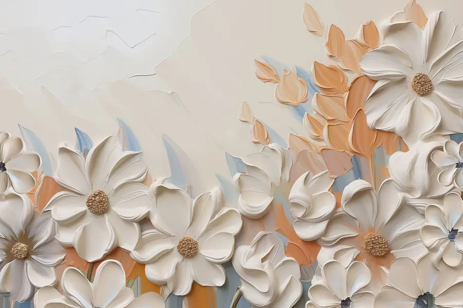 Verwandeln Sie eine triste Wand in einen Garten mit diesem lebendigen Wandbild mit blühenden Blumen. Stellen Sie sich vor, Sie betreten einen Raum, in dem die Blütenblätter vor Leben platzen und Sie einladen, innezuhalten und ihre Schönheit zu genießen. Die sanften Farben schaffen eine beruhigende Atmosphäre, in der man gerne Kaffee trinkt oder Geschichten erzählt. Ob es eine gemütliche Ecke aufhellt oder einen lebendigen Wohnraum in Szene setzt, dieses Wandbild vermittelt ein Gefühl von Freude und Wärme. Es ist mehr als nur Dekoration – es ist wie ein frischer Blumenstrauß, der nie verwelkt. Was für eine wunderbare Art, die Natur ins Haus zu holen!