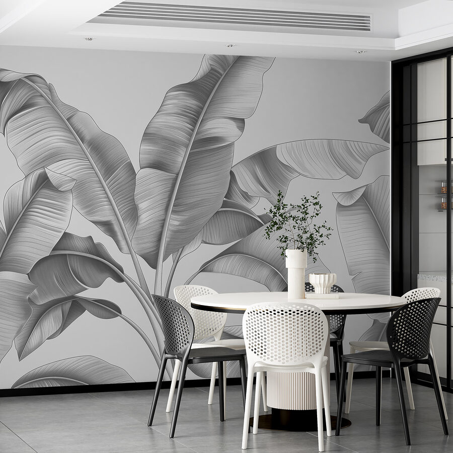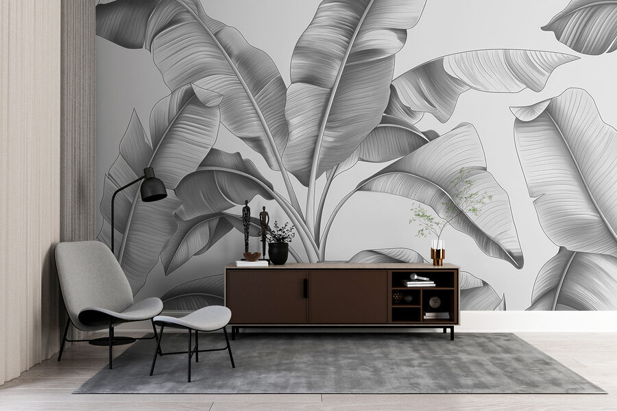Mit seinem coolen Graustufen-Look passt er in fast jeden Raum – vom modernen Wohnzimmer bis zum ruhigen Schlafzimmer. Außerdem verleiht der 3D-Effekt dem Bild so viel Tiefe, dass man sich dabei ertappen könnte, die Blätter zu berühren! Im Ernst: Es hat etwas Beruhigendes, von Laub umgeben zu sein – abgesehen von der Bewässerung und dem Ungeziefer, versteht sich.