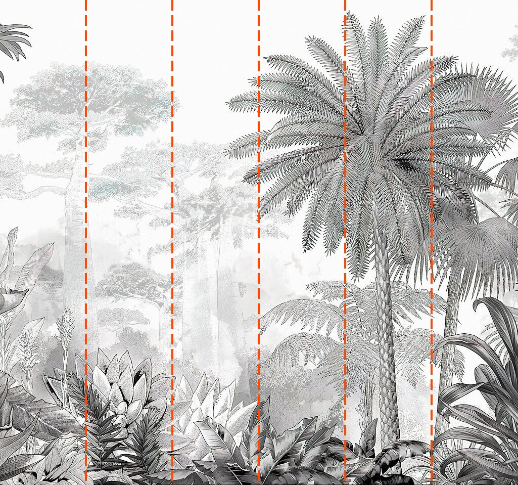 Ihre Tapete wird nach den von Ihnen während des Bestellvorgangs angegebenen Maßen angefertigt. Die Leinwand wird in praktische Abschnitte von jeweils bis zu 50 cm Breite unterteilt.