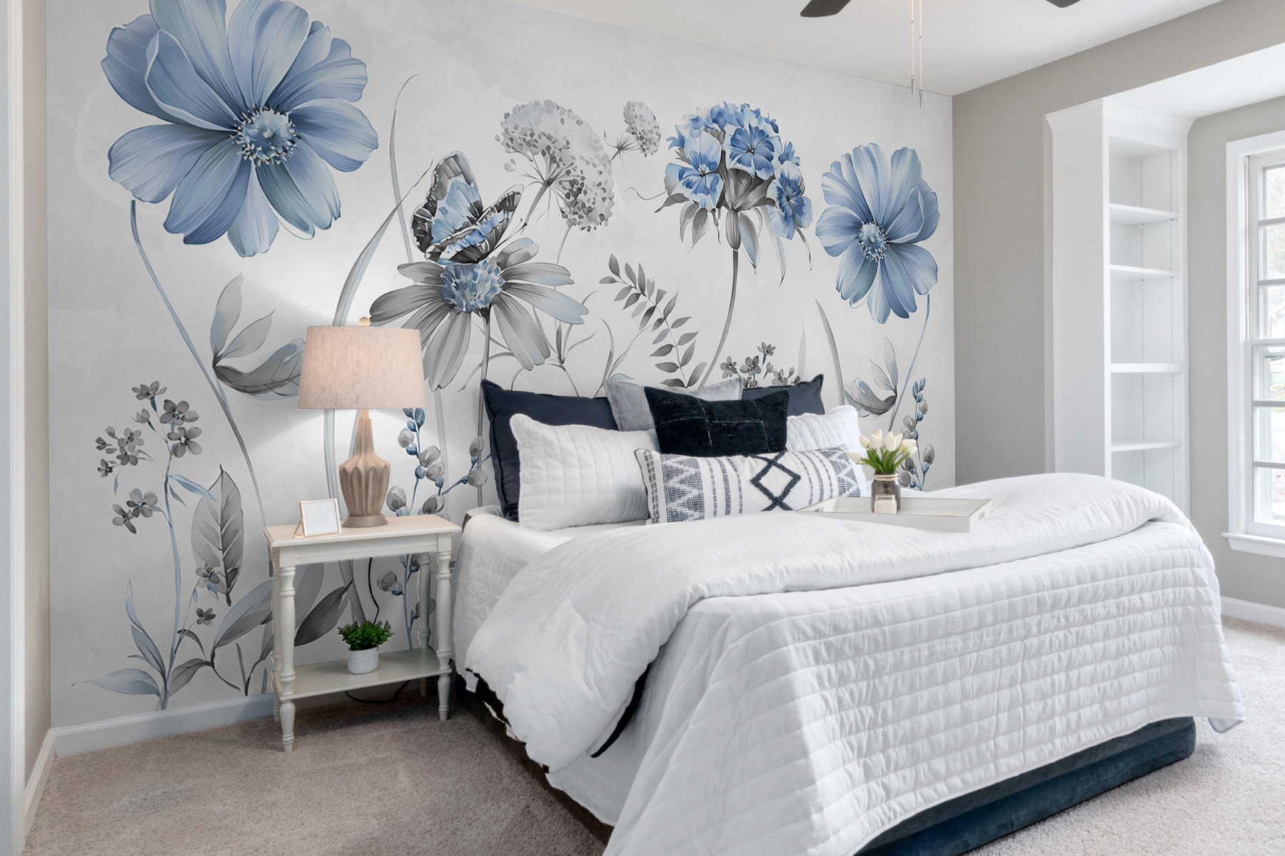 Also gut, reden wir über dieses Wandbild – “Fototapeten w07905v2”, wie es offiziell heißt. Es ist ein Leckerbissen für Schmetterlingsliebhaber und alle, die auf Dekoration mit Naturmotiven stehen. Stellen Sie sich vor: Sie trinken Ihren Morgenkaffee, und diese zarten blauen Blumen und Schmetterlinge bilden den Hintergrund für Sie. Die zarten Farbtöne und die filigranen Details haben eine fast magische Ausstrahlung… als wären Sie in einen heiteren Garten eingetreten.