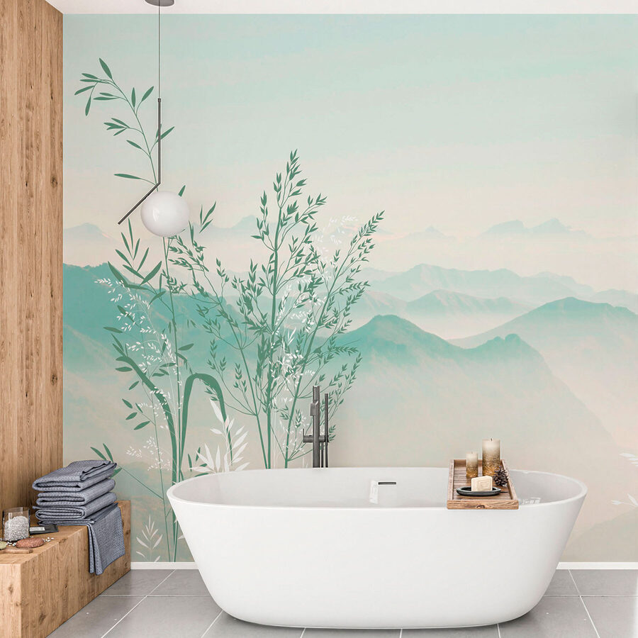 Dieses Landschaftsbild mit sanften Bergen und zarten Bäumen verleiht jedem Raum einen Hauch von Gelassenheit. Stellen Sie sich vor, Sie betreten einen friedlichen Rückzugsort direkt in Ihrem Wohnzimmer. Die sanften Farbtöne laden zur Ruhe ein und sind perfekt, um den Stress nach einem langen Tag abzubauen. Gäste könnten sagen, dass es sich an Ihrer Wand wie ein Mini-Urlaub anfühlt. Jeder Blick lädt zu Tagträumen von frischer Bergluft und raschelnden Blättern ein. Diese Fototapete eignet sich perfekt für ruhige Ecken oder auffällige Akzente und bringt die Natur mühelos nach drinnen – Wanderschuhe sind nicht erforderlich. Fügen Sie einfach einen gemütlichen Stuhl und ein gutes Buch hinzu!