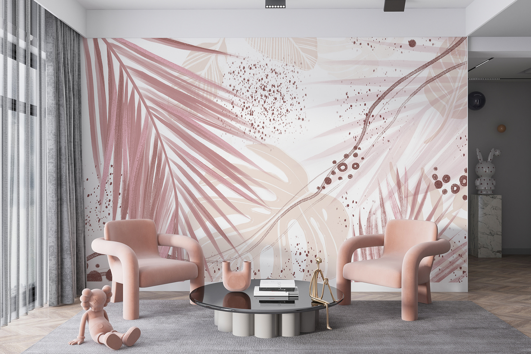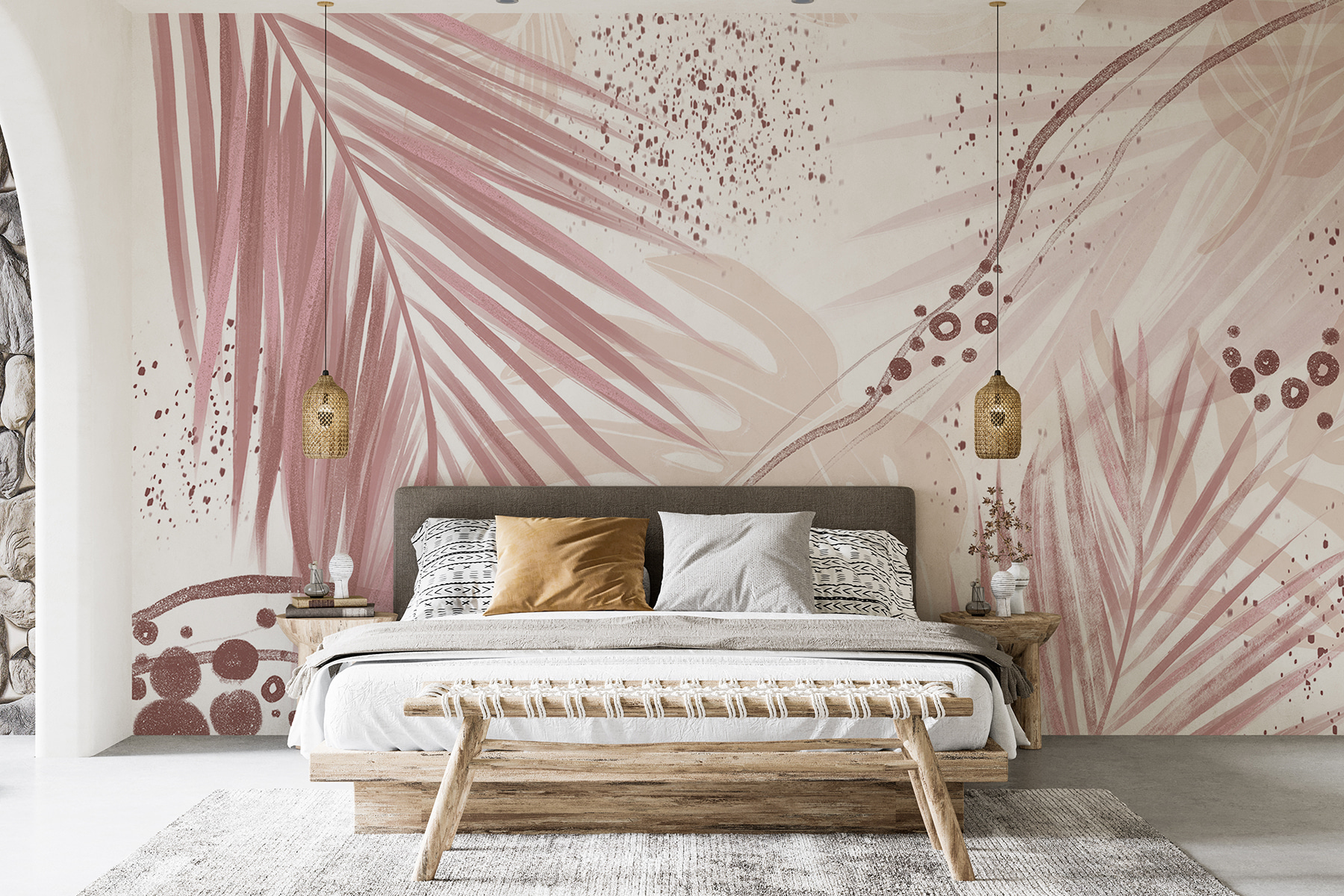 Die verschlungenen Palmenblätter und abstrakten Muster, gemischt mit sanften Rosa- und Erdtönen… ein Traum für jeden Naturliebhaber! Perfekt, um Ihrem Wohnzimmer, Ihrem Schlafzimmer oder sogar Ihrem Büro ein wenig Flair zu verleihen. Was wäre das Leben ohne einen Hauch von Kreativität? Jedes Mal, wenn Sie den Raum betreten, ist es wie eine sanfte Umarmung von Mutter Natur – eine kleine Flucht aus dem Alltagsstress.