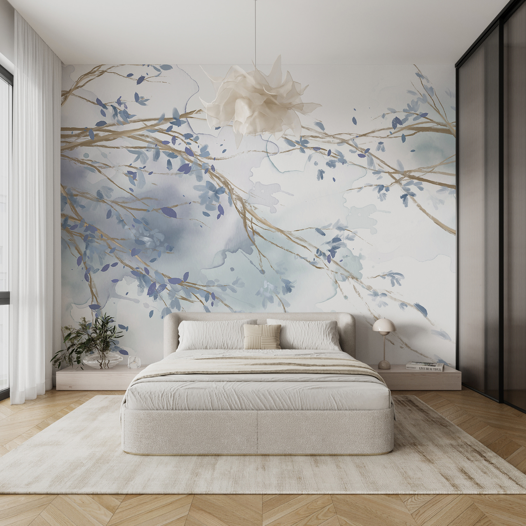 Und diese sanften Farbnuancen? Sie passen nicht nur – sie fügen sich mühelos in viele Einrichtungsstile ein. Ganz gleich, ob Sie auf modernen Chic oder rustikalen Charme stehen, diese Fototapete ist genau das Richtige für Sie! Gönnen Sie Ihren Wänden etwas Liebe und sehen Sie, wie sehr dieses wunderschöne Wandbild Ihren Raum und Ihre Stimmung verändern kann… Und hey, das ist doch viel aufregender als eine einfach gestrichene Wand, oder?