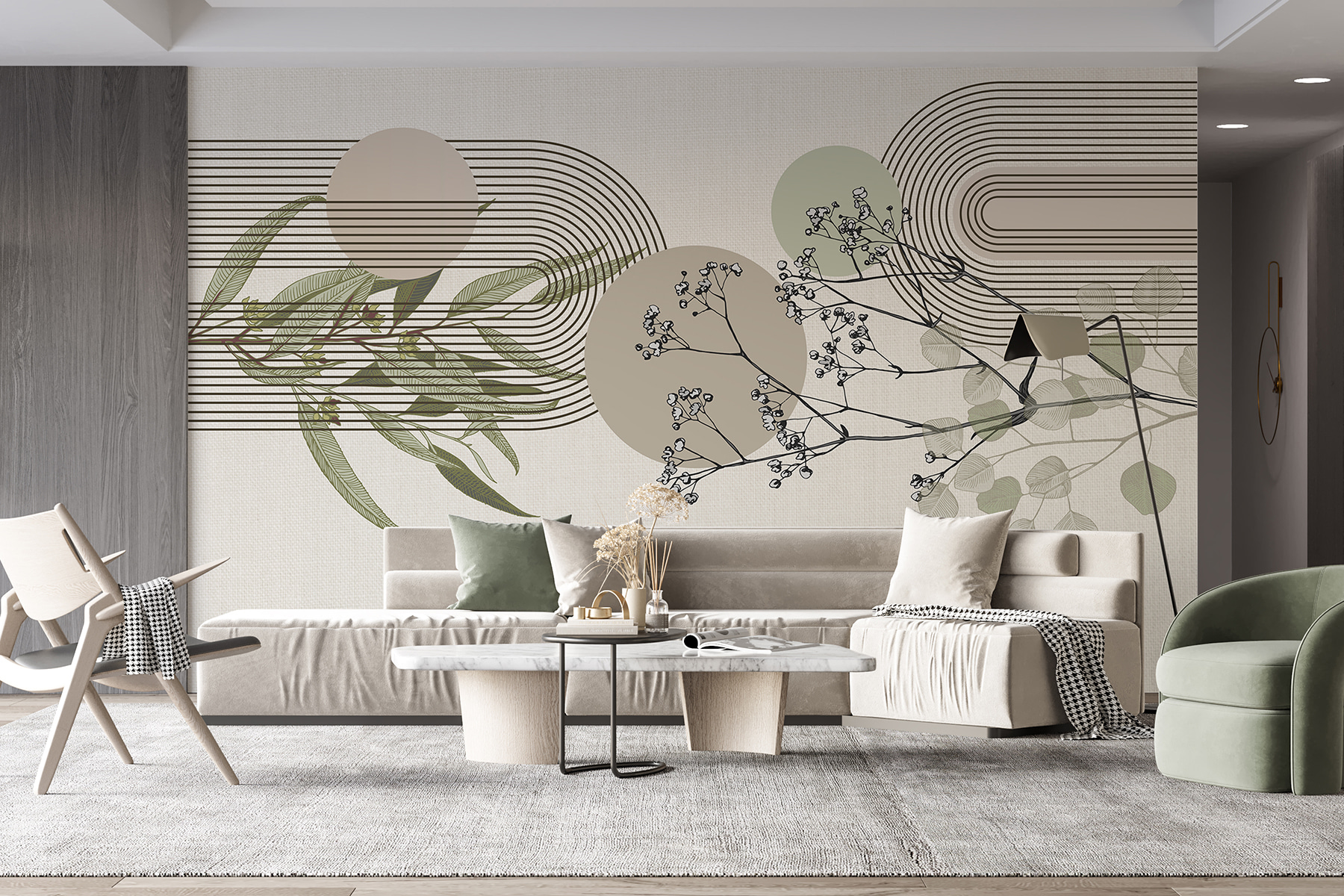 Stellen Sie sich vor: Sie schlürfen Ihren Morgenkaffee, und diese erdigen Töne hüllen Sie in eine warme Umarmung. Egal, ob Sie ein Naturliebhaber, ein Design-Enthusiast oder einfach nur ein cooler Hintergrund für Ihre Videogespräche sind, dieses Wandbild ist genau das Richtige für Sie. Die abstrakten und botanischen Elemente machen es zu mehr als nur einer Wandverkleidung – es ist Kunst, die Ihren Alltag verschönert! Warum also nicht Ihre Wände sprechen lassen?