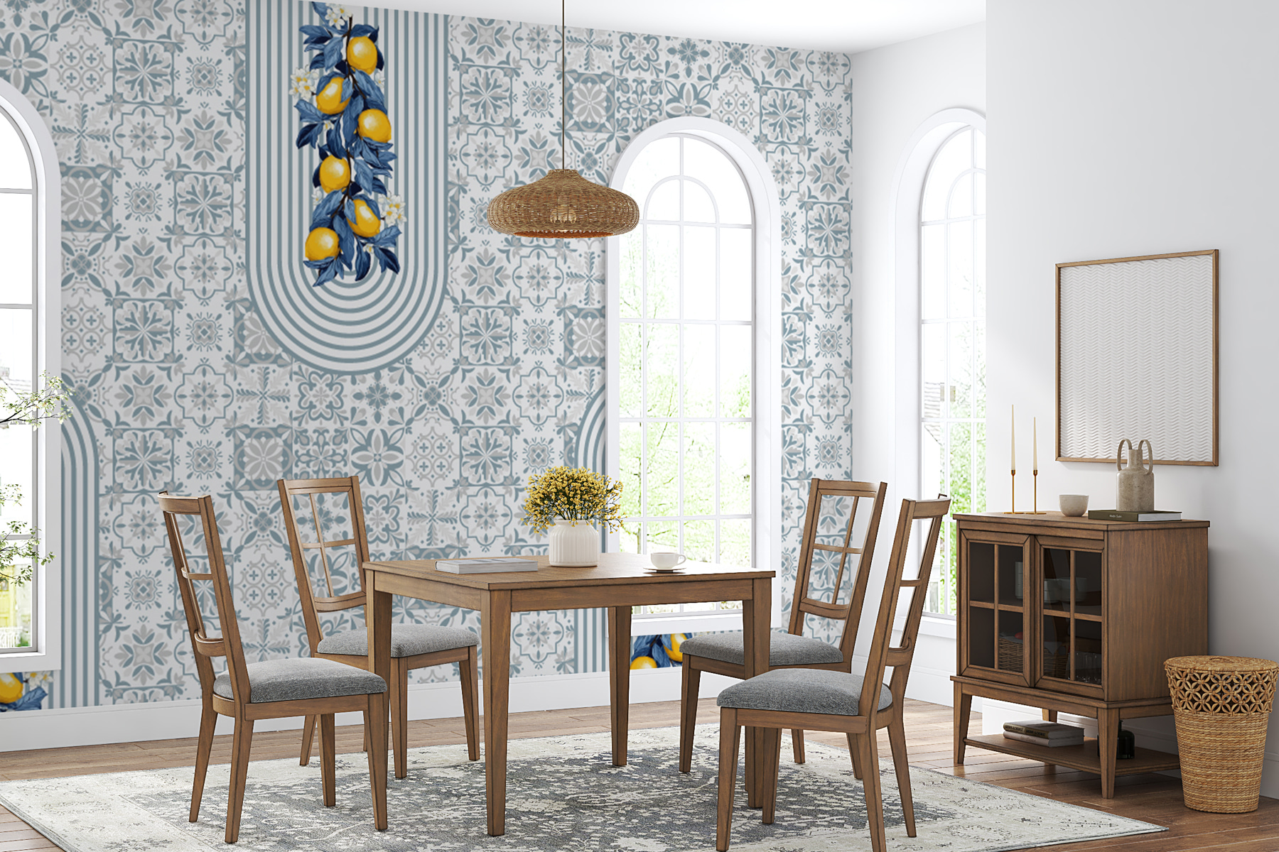 Haben Sie schon einmal davon geträumt, in eine sonnenbeschienene mediterrane Küche zu entschwinden? Dieses “Fototapeten w08034” könnte Ihre kleine Flucht sein. Denken Sie an frische Zitronen, leuchtende Blautöne und ein verspieltes Muster, das sowohl modern als auch nostalgisch ist. Es ist, als würden Sie jeden Morgen mit dem fröhlichsten Mosaik der Welt aufwachen – fröhlich, erfrischend und eine sanfte Anspielung auf Sommerferien am Meer. Perfekt für jeden Raum, der einen Hauch von Wärme und Charme braucht. Stellen Sie sich vor, wie Ihre Gäste Ihre Wand bestaunen und fragen: “Woher haben Sie diese Freude?” Ein Stück, das leere Räume in Gespräche verwandelt.