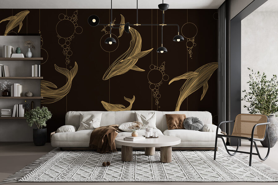 Tauchen Sie ein in einen Hauch von Harmonie mit dieser Fototapete “Group of Whales and Bubbles”. Stellen Sie sich vor, Ihre Wände verwandeln sich in ein ozeanisches Wunderland, in dem anmutige Wale zwischen verspielten Luftblasen gleiten. Die weichen, fließenden Linien schaffen ein Gefühl der Ruhe, das Sie umgibt, fast wie eine sanfte Umarmung durch das Meer. Stellen Sie sich vor, Sie nippen an Ihrem Kaffee, während Sie diese majestätischen Kreaturen beobachten – es ist, als hätten Sie Ihr eigenes maritimes Heiligtum. Diese Fototapete eignet sich perfekt, um jedem Raum einen Hauch von maritimem Charme zu verleihen und lädt zu Entspannung und Neugierde ein. Wer würde nicht gerne das tiefe Blau von seinem Wohnzimmer aus erkunden? Ihr Raum verdient einen Hauch von Magie, und dieses Kunstwerk könnte genau das Richtige sein.