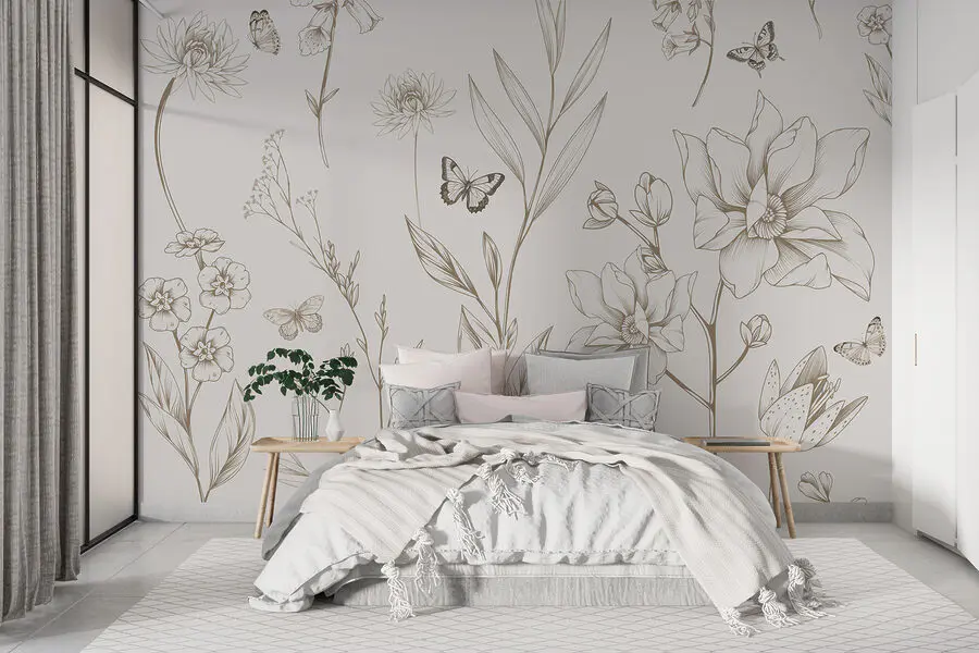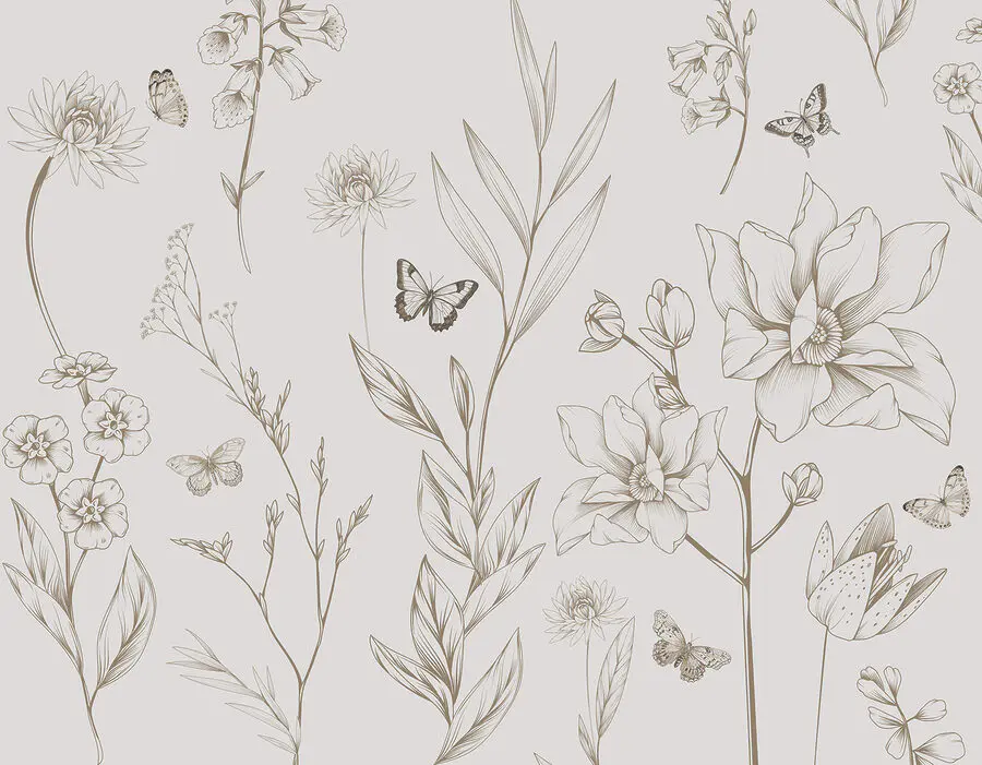 Haben Sie schon einmal davon geträumt, die Ruhe einer sonnigen Wildblumenwiese in Ihren Raum zu bringen – aber ohne die Käfer? Schauen Sie sich dieses schöne “Wandbild w08088v1” aus unseren Kategorien Schmetterlinge und Natur an. Es ist, als hätte jemand eine zarte Bleistiftskizze eines Gartens mit Schmetterlingen eingefangen. Stellen Sie es sich vor: Diese fein gezeichneten Blätter und Blüten bilden einen subtilen, eleganten Hintergrund. Schön, nicht wahr?