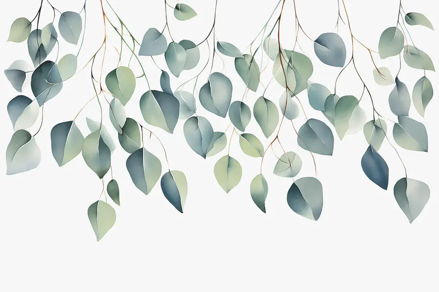 Fototapeten Eukalyptusblätter in heiterer Kaskade Fototapeten Eukalyptusblätter in heiterer Kaskade