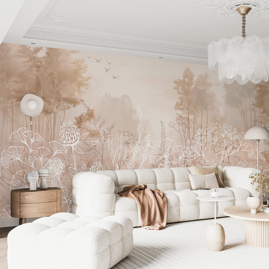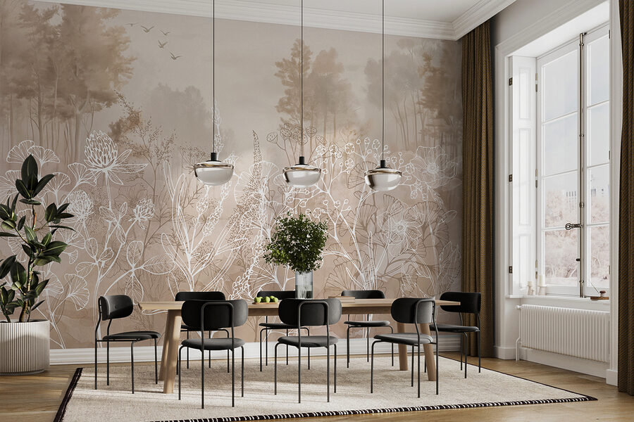 Stellen Sie sich einen Raum vor, der mehr an einen ruhigen Garten als an ein Zimmer erinnert. Diese Fototapete “Drawing of Plants and Trees” bringt das Glück des Gartens direkt ins Haus. Die zarten, weißen Umrisse der Pflanzen und die sanften, erdigen Töne schaffen eine beruhigende Atmosphäre, die Entspannung verheißt. Stellen Sie sich vor, Sie beginnen den Tag mit einer Tasse Kaffee, während Sie sich in diesem botanischen Traum sonnen! Es ist, als hätte man ein Stück Natur an der Wand – perfekt, um die Kreativität anzuregen oder nach einem anstrengenden Tag einfach zu entspannen. Jeder Blick erinnert Sie daran, durchzuatmen, sich zu entspannen und vielleicht sogar die Wanderung zu planen, von der Sie immer gesprochen haben. Lassen Sie Ihre Wände eine Geschichte von Ruhe und Charme erzählen und verwandeln Sie Ihr Zuhause in eine kleine Oase. Wer würde sich das nicht wünschen?