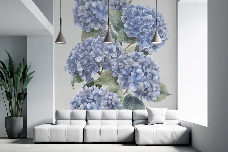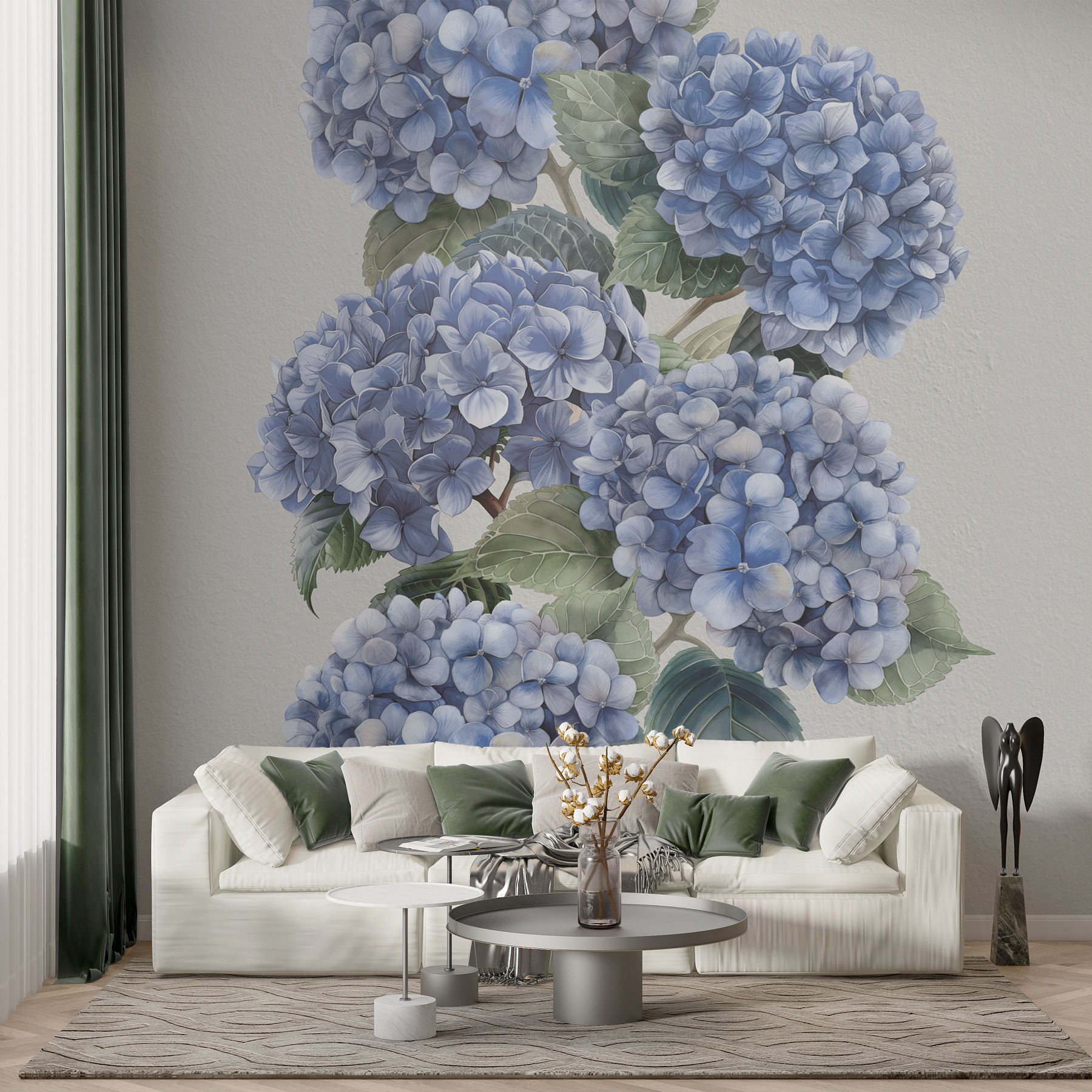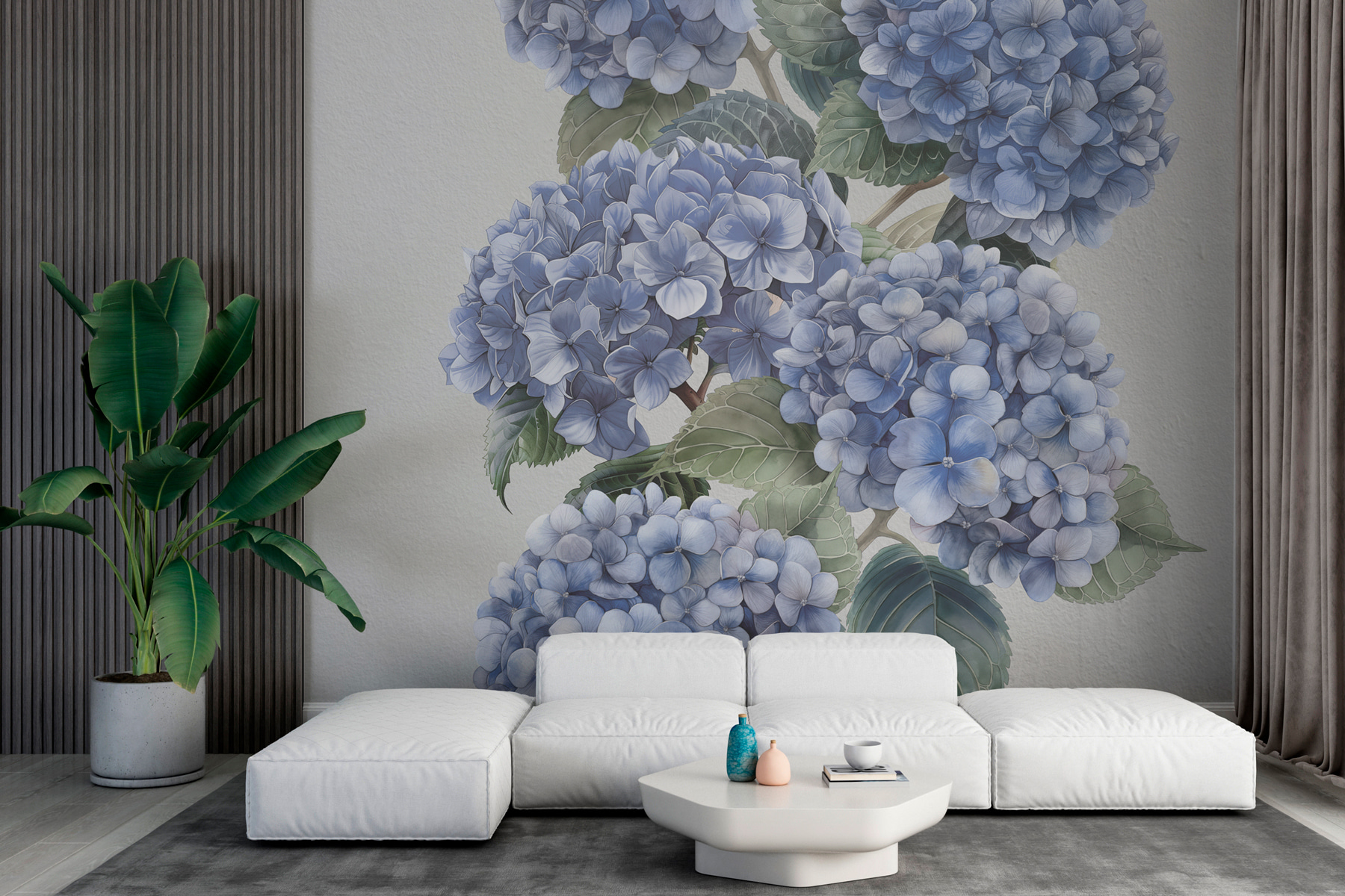 Verwandeln Sie jeden Raum in eine heitere Gartenoase mit dieser atemberaubenden Fototapete, die blaue Hortensien in zarter Blüte zeigt. Stellen Sie sich vor, Sie betreten einen Raum, der Ihre Stimmung sofort aufhellt und in dem jedes Blütenblatt die Geheimnisse eines Sommertages zu flüstern scheint. Es ist, als hätten Sie ein kleines Stück Natur direkt an Ihren Wänden. Die sanften Farbtöne und filigranen Details laden zu einer sanften Ruhe ein, die perfekt für gemütliche Ecken oder lebhafte Treffpunkte ist. Ihre Freunde werden Ihre einzigartige Dekoration bewundern, und wer weiß, vielleicht inspirieren Sie ja auch jemanden dazu, mit dem Gärtnern anzufangen – oder zumindest die Schönheit der Blumen ein bisschen mehr zu schätzen! Dieses Wandbild ist für Natur- und Kunstliebhaber gleichermaßen geeignet und verleiht jedem Interieur eine erfrischende Note.