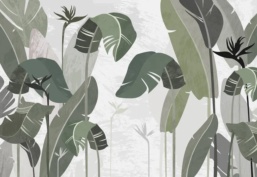 Verwandeln Sie jeden Raum in eine heitere Oase mit der Fototapete “Tropical Leaves in Stylish Hues”. Stellen Sie sich vor: Sie betreten Ihren Raum, und schon hüllen Sie diese übergroßen Blätter in eine gemütliche und doch erfrischende Atmosphäre. Die gedämpften Grüntöne und die sanften Töne flüstern fast die Ruhe der Natur, so dass sich Ihr Wohnbereich wie ein sonnendurchfluteter Rückzugsort anfühlt. Stellen Sie sich vor, Sie schlürfen Ihren Morgenkaffee inmitten dieser üppigen Kulisse. Es ist nicht nur Dekoration, es ist eine Flucht. Perfekt für gemütliche Abende oder gesellige Zusammenkünfte. Mit dieser Fototapete wird Ihre Wand nicht nur eine Wand sein – sie wird eine Geschichte erzählen.