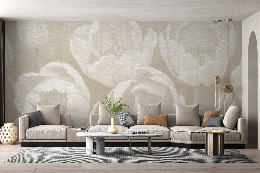 Die Vinylbeschichtung ist eine dünne PVC-Schicht, die auf ein Vlies aufgebracht wird. Das Vorhandensein von Vinyl macht die Tapete widerstandsfähig gegen Beschädigungen, ermöglicht eine einfache Reinigung mit einem feuchten Schwamm und verleiht der Oberfläche eine geprägte Textur, die an Leinenstoff erinnert.
