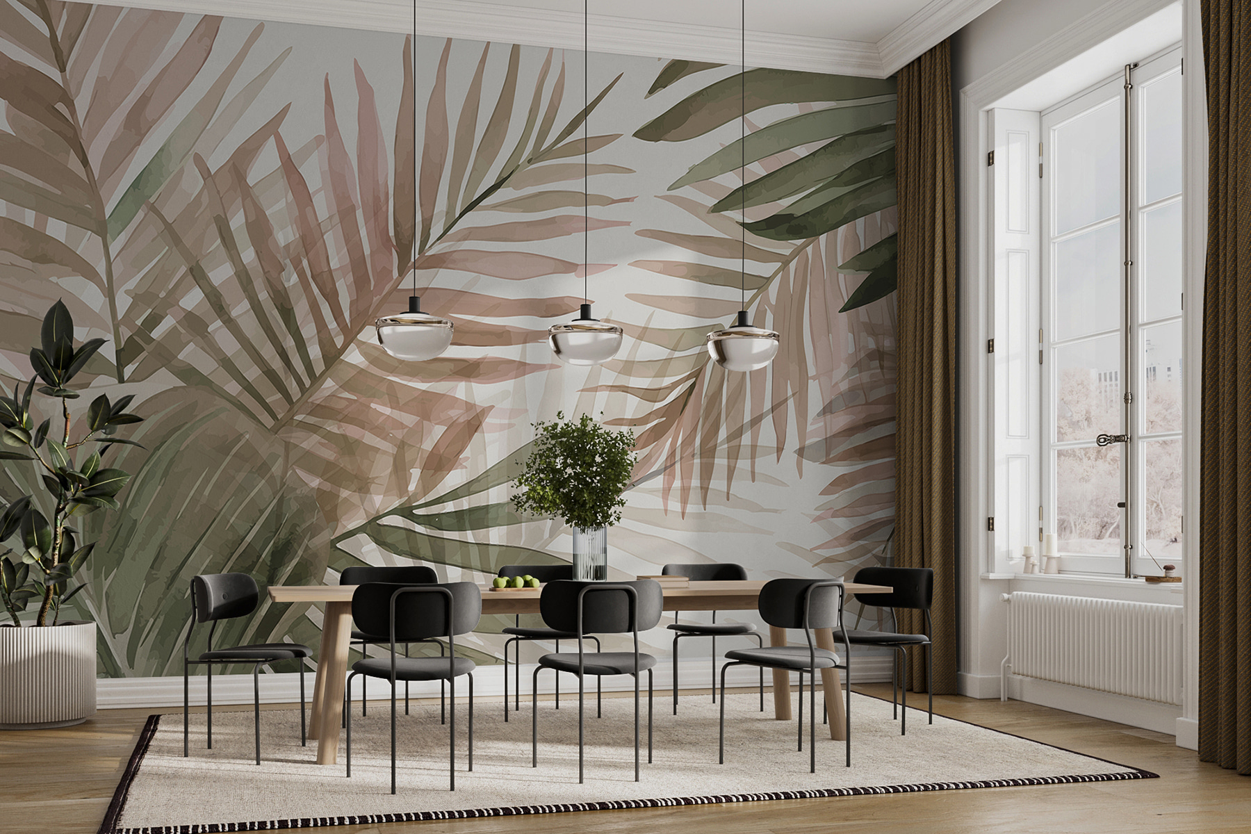 Manchmal ist es schön, einen Raum zu haben, der Ruhe ausstrahlt, wenn das Leben ein bisschen zu laut ist. Dieses Wandbild tut genau das. Es macht Lust, sich zurückzulehnen, etwas Fruchtiges zu schlürfen und von palmengesäumten Stränden zu träumen. Wenn dein Zuhause dein Zufluchtsort ist, könnte diese Fototapete genau der Hauch von frischer Luft sein, den es braucht. 🍃