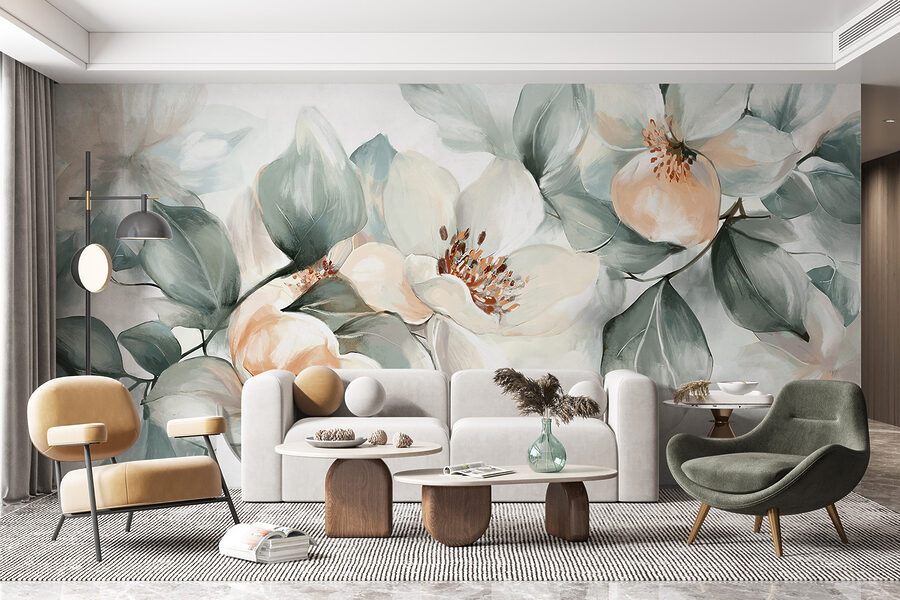 Um Ihren Raum in ein blühendes Paradies zu verwandeln, müssen Sie nur dieses hübsche Wandbild abziehen und aufkleben. Stellen Sie sich lebhafte Blumen und üppige Blätter vor, die auf Ihre Wände spritzen, fast so, als hätte die Natur beschlossen, für einen kleinen Besuch ins Haus zu kommen. Die sanften Farben schaffen eine verträumte Atmosphäre und eignen sich perfekt für gemütliche Ecken oder lebhafte Wohnzimmer. Stellen Sie sich vor, Sie schlürfen Ihren Morgenkaffee, während Sie ein Stück Natur betrachten, nur ohne Ungeziefer und Wetter. Es ist, als hätte man einen Garten, ohne sich darum kümmern zu müssen! Diese Fototapete bringt einen Hauch von frischer Luft und einen Hauch von Ruhe – ganz ohne Gießkanne.