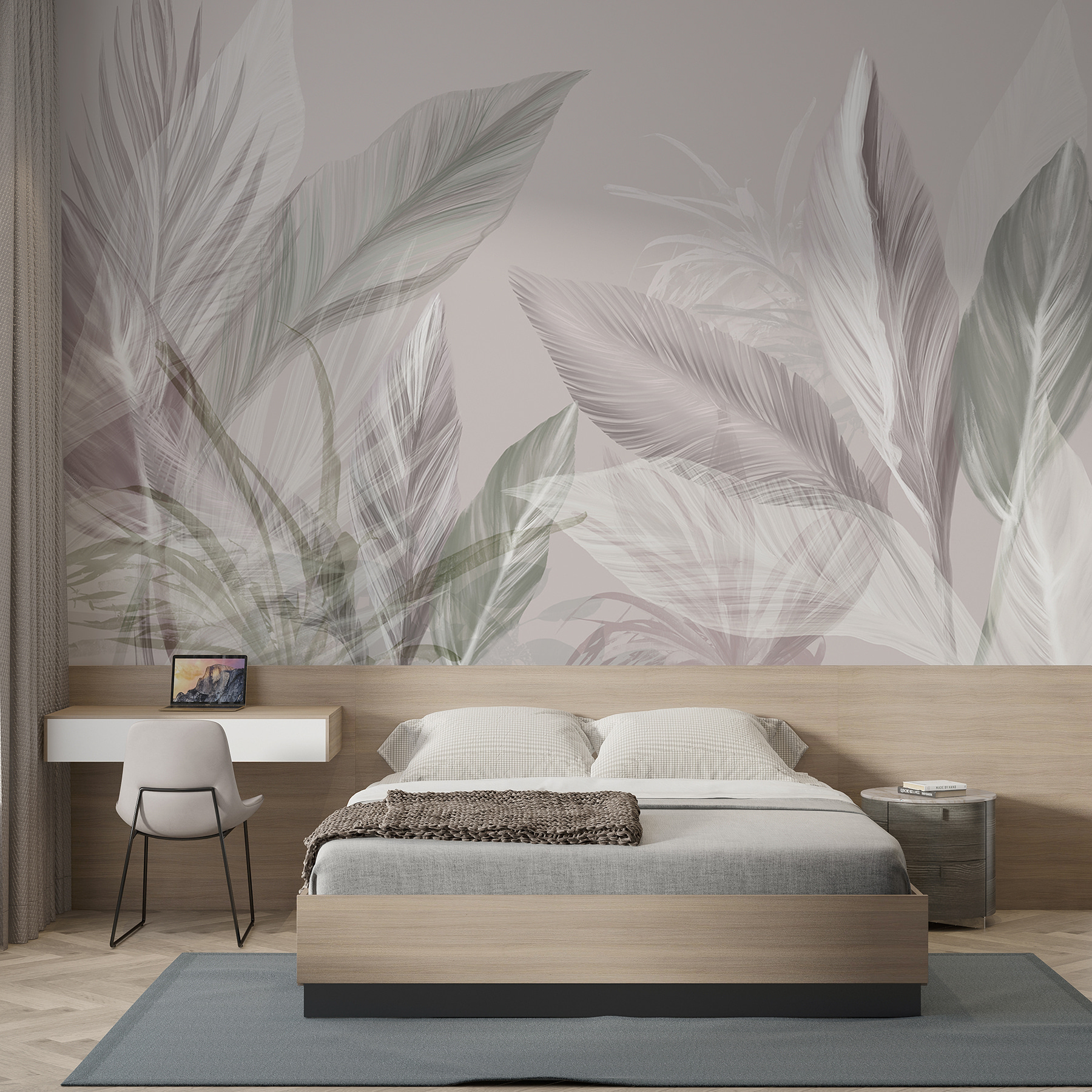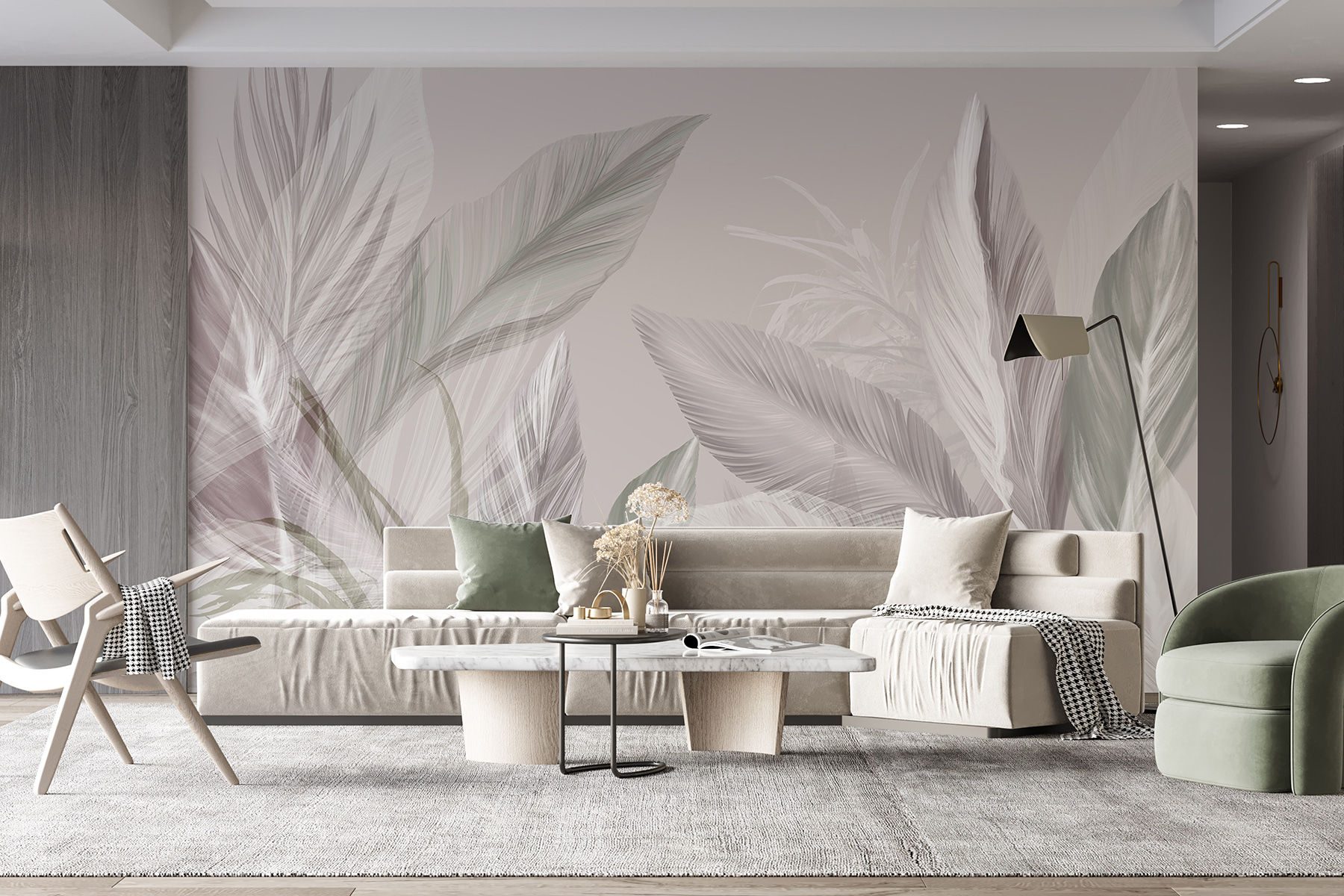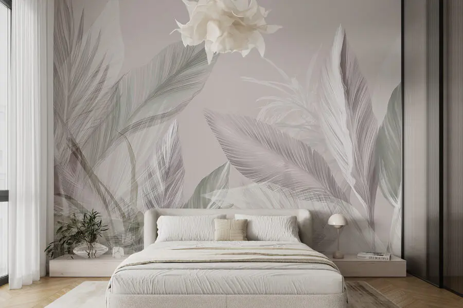 Verwandeln Sie jeden Raum in eine ruhige Oase mit “Ethereal Whispers in Soft Hues”. Diese Fototapete vereint mühelos gedeckte Farben und zartes Blattwerk und schafft so eine heitere Atmosphäre, die Entspannung verheißt. Stellen Sie sich vor, Sie machen es sich mit einem Buch in einem Raum gemütlich, der mit diesen zarten Blättern geschmückt ist – es ist, als ob Sie von der Natur selbst umarmt werden. Perfekt für gemütliche Abende oder spontane Tanzpartys im Wohnzimmer. Das ist nicht nur Dekoration, sondern ein Erlebnis, das Ihre Gäste glauben lässt, dass Ihr Zuhause direkt aus einem Design-Magazin stammt. Also los, lassen Sie diese beruhigenden Farbtöne Leben in Ihre Wände bringen!