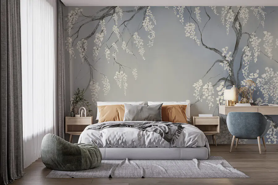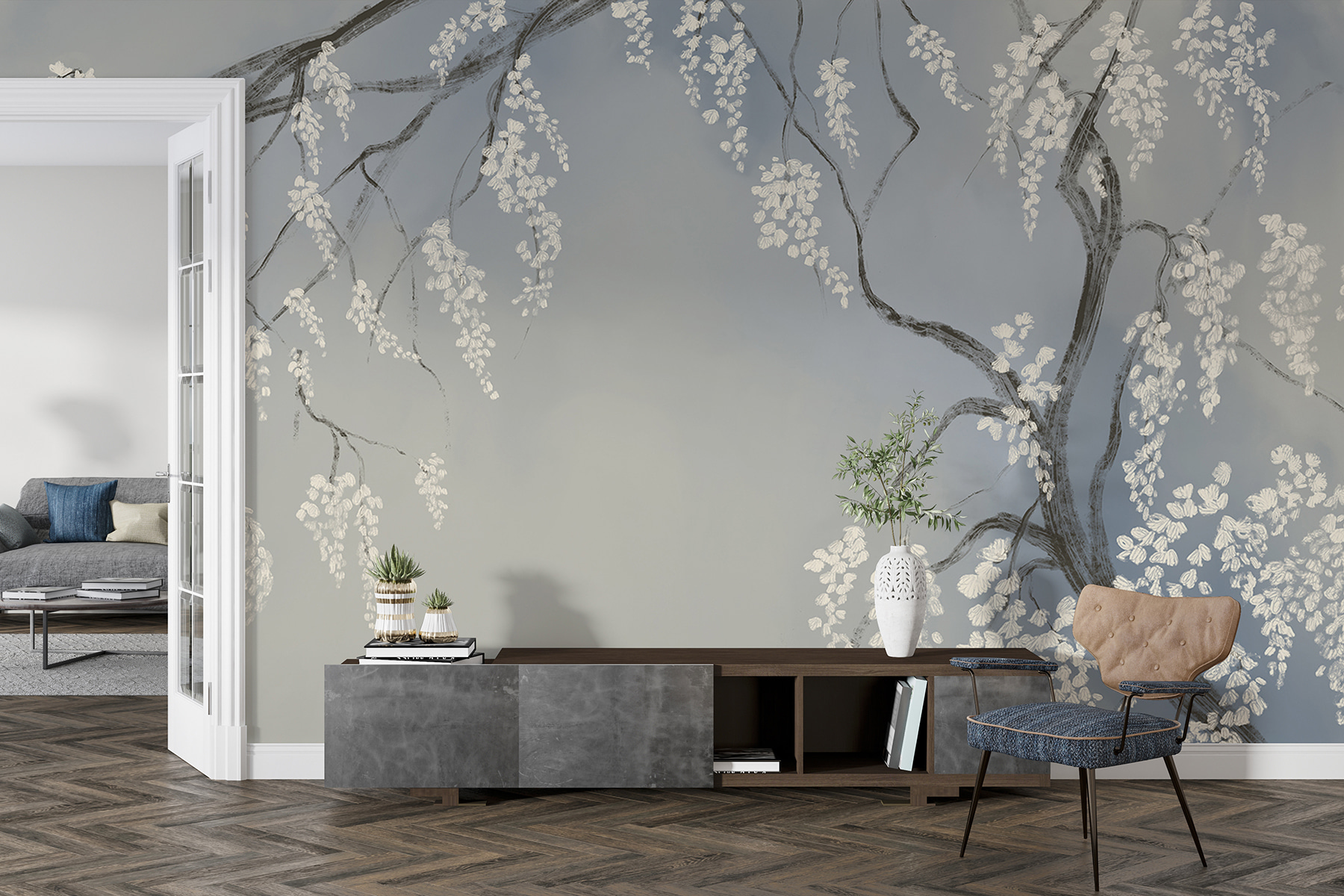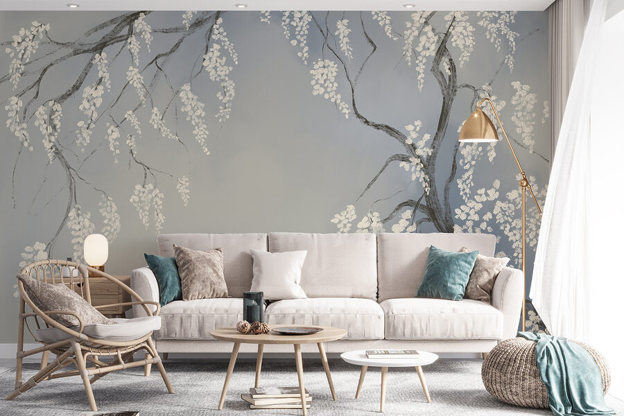 Verändern Sie jeden Raum mit dieser atemberaubenden Fototapete, die zarte, mit weißen Blumen geschmückte Äste zeigt. Stellen Sie sich vor, Sie betreten einen ruhigen japanischen Garten, ohne Ihr Haus zu verlassen. Der sanfte Kontrast zwischen sanften Blautönen und strahlendem Weiß kann selbst die trübsten Tage aufhellen. Stellen Sie sich vor, Sie schlürfen einen Tee oder lesen ein gutes Buch, während Sie sich in dieser friedlichen Atmosphäre sonnen. Es ist, als hätten Sie einen Hauch von frischer Luft direkt an Ihrer Wand. Ihre Freunde werden Sie fragen, ob Sie eine Reise nach Japan gemacht haben! Diese Fototapete eignet sich perfekt für gemütliche Ecken oder zur Auffrischung eines größeren Raums und verleiht Charme und Gelassenheit.